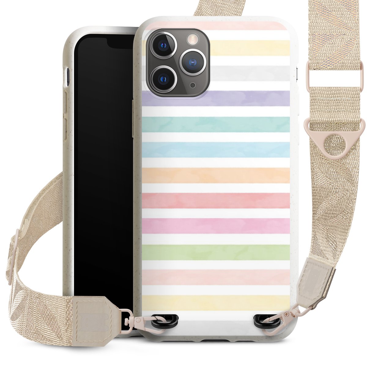 Gestalte Dein Case ganz nach Deinen Wünschen! Edles Creme oder lieber klassisches Schwarz? Du entscheidest, welche Farbe am besten zu Dir passt. Die dezenten Designs der Gurtbänder passen garantiert zu Deiner Hülle, egal mit welchem Lieblingsmotiv Du Dein Case bedrucken lässt.