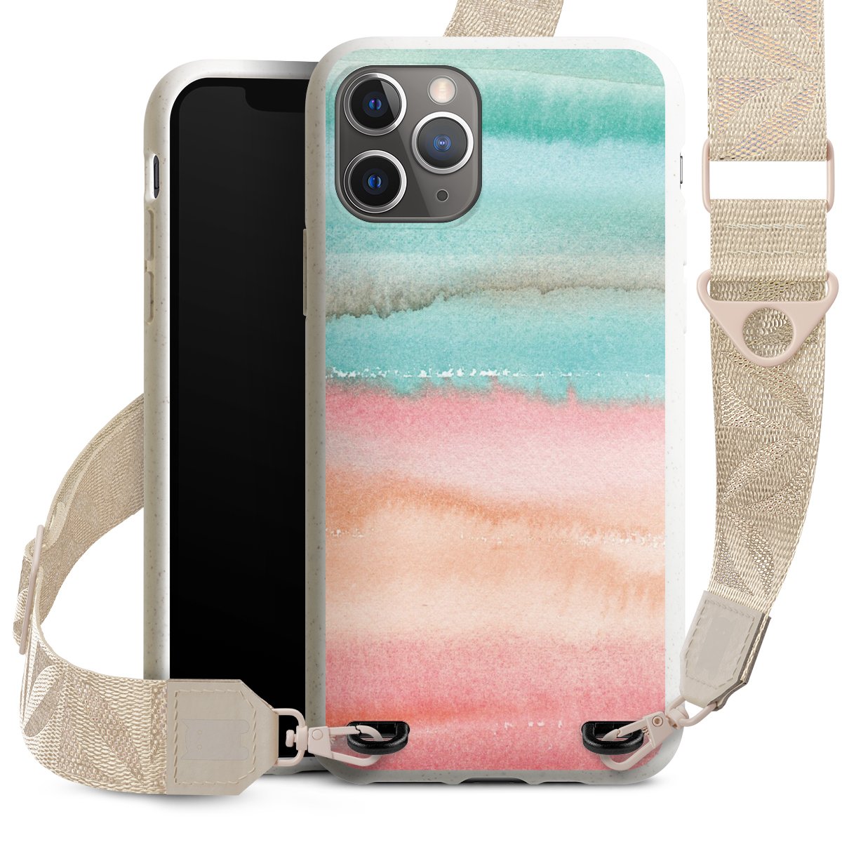 Gestalte Dein Case ganz nach Deinen Wünschen! Edles Creme oder lieber klassisches Schwarz? Du entscheidest, welche Farbe am besten zu Dir passt. Die dezenten Designs der Gurtbänder passen garantiert zu Deiner Hülle, egal mit welchem Lieblingsmotiv Du Dein Case bedrucken lässt.