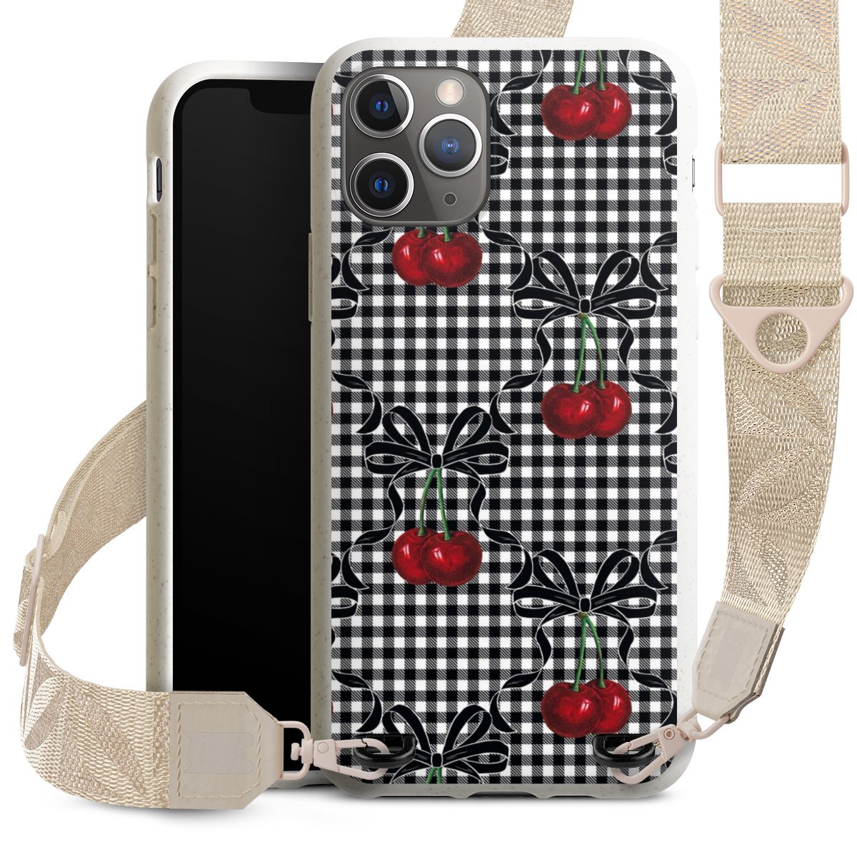 Gestalte Dein Case ganz nach Deinen Wünschen! Edles Creme oder lieber klassisches Schwarz? Du entscheidest, welche Farbe am besten zu Dir passt. Die dezenten Designs der Gurtbänder passen garantiert zu Deiner Hülle, egal mit welchem Lieblingsmotiv Du Dein Case bedrucken lässt.