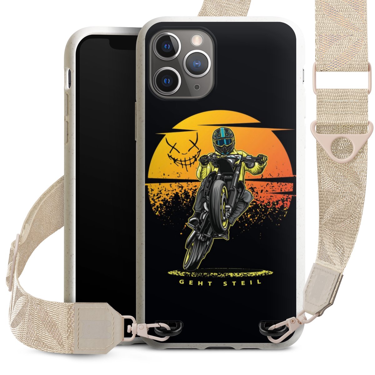 Gestalte Dein Case ganz nach Deinen Wünschen! Edles Creme oder lieber klassisches Schwarz? Du entscheidest, welche Farbe am besten zu Dir passt. Die dezenten Designs der Gurtbänder passen garantiert zu Deiner Hülle, egal mit welchem Lieblingsmotiv Du Dein Case bedrucken lässt.