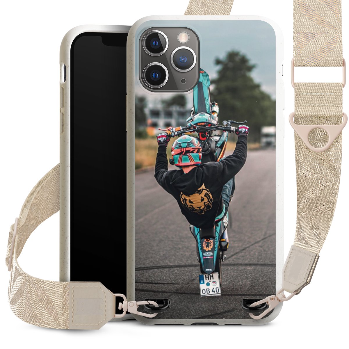 Gestalte Dein Case ganz nach Deinen Wünschen! Edles Creme oder lieber klassisches Schwarz? Du entscheidest, welche Farbe am besten zu Dir passt. Die dezenten Designs der Gurtbänder passen garantiert zu Deiner Hülle, egal mit welchem Lieblingsmotiv Du Dein Case bedrucken lässt.