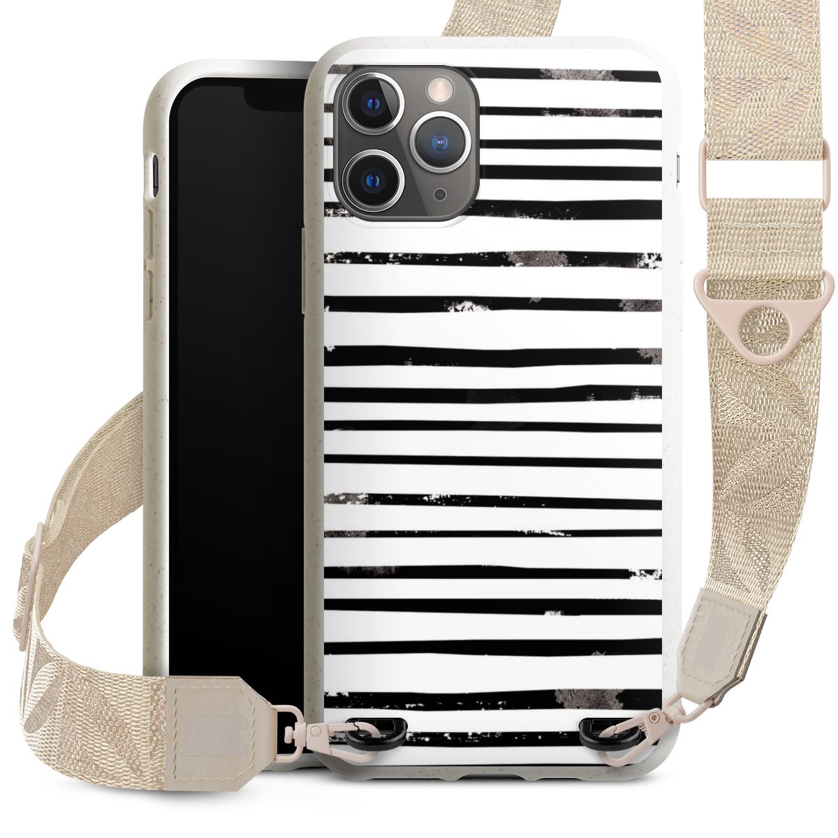 Gestalte Dein Case ganz nach Deinen Wünschen! Edles Creme oder lieber klassisches Schwarz? Du entscheidest, welche Farbe am besten zu Dir passt. Die dezenten Designs der Gurtbänder passen garantiert zu Deiner Hülle, egal mit welchem Lieblingsmotiv Du Dein Case bedrucken lässt.