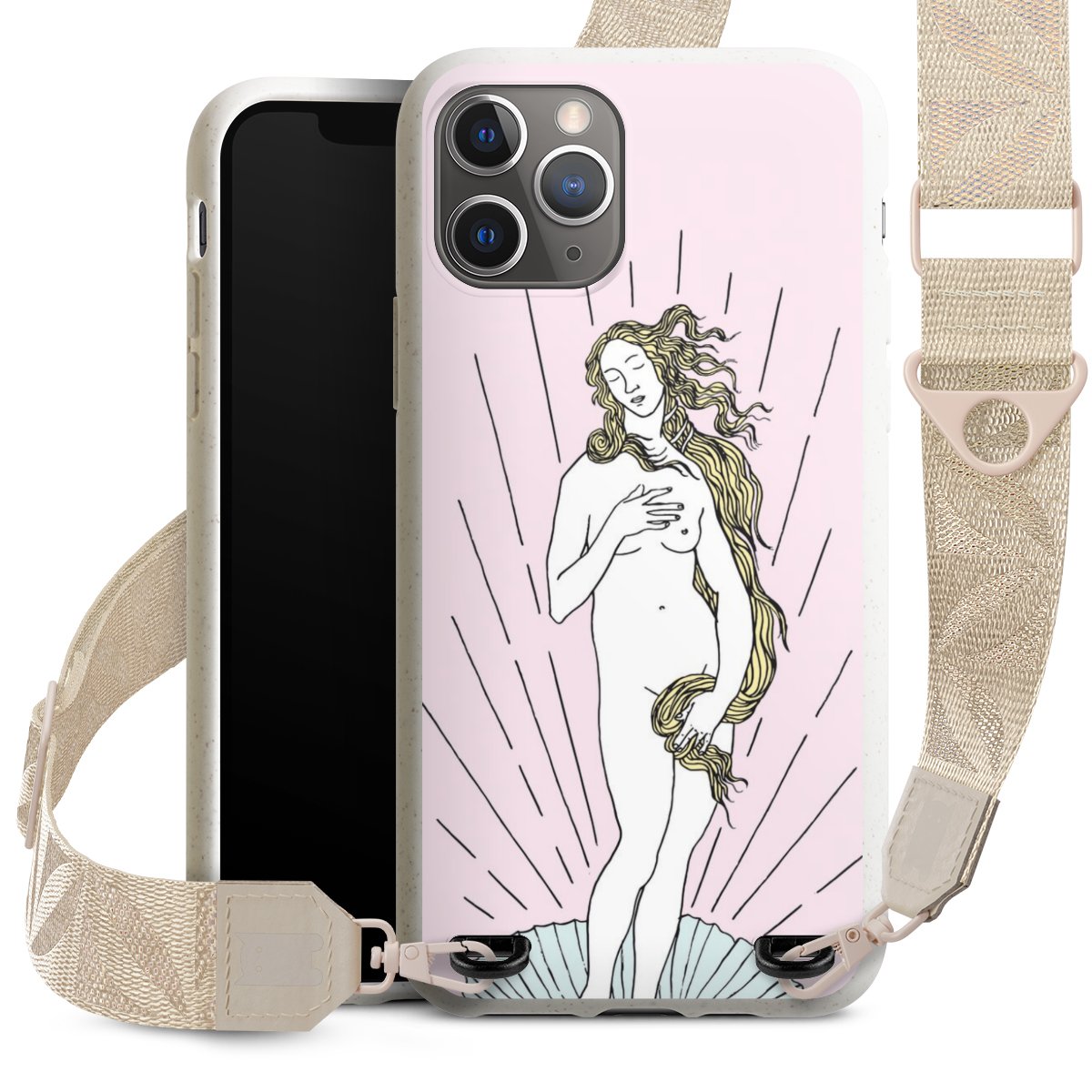 Gestalte Dein Case ganz nach Deinen Wünschen! Edles Creme oder lieber klassisches Schwarz? Du entscheidest, welche Farbe am besten zu Dir passt. Die dezenten Designs der Gurtbänder passen garantiert zu Deiner Hülle, egal mit welchem Lieblingsmotiv Du Dein Case bedrucken lässt.