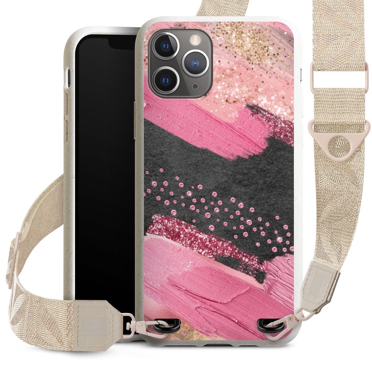 Gestalte Dein Case ganz nach Deinen Wünschen! Edles Creme oder lieber klassisches Schwarz? Du entscheidest, welche Farbe am besten zu Dir passt. Die dezenten Designs der Gurtbänder passen garantiert zu Deiner Hülle, egal mit welchem Lieblingsmotiv Du Dein Case bedrucken lässt.