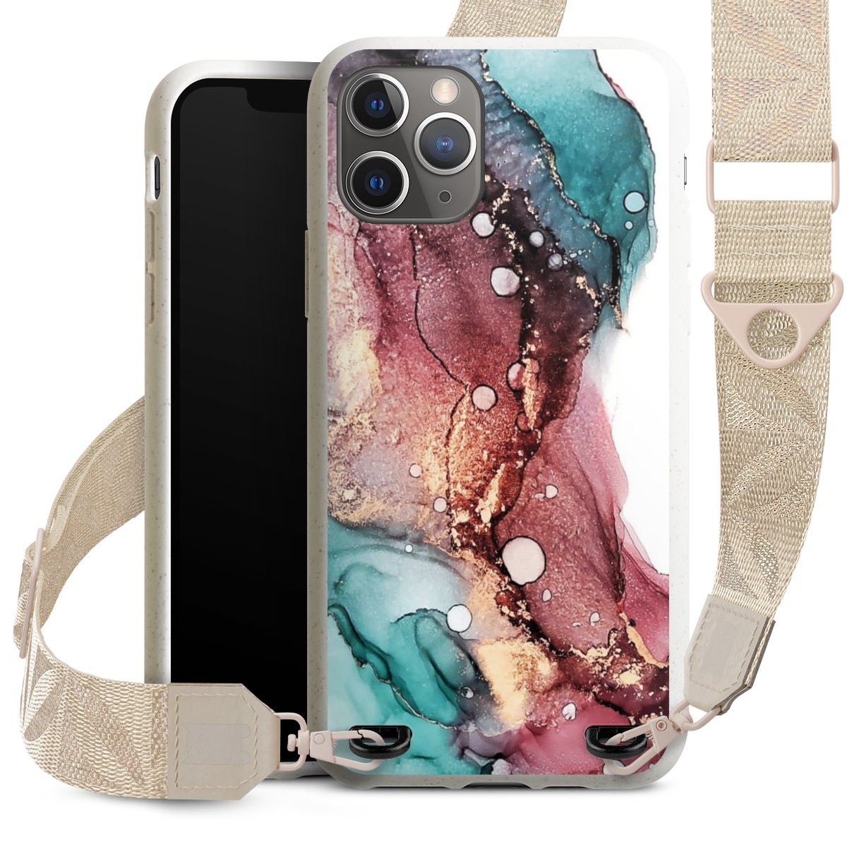Gestalte Dein Case ganz nach Deinen Wünschen! Edles Creme oder lieber klassisches Schwarz? Du entscheidest, welche Farbe am besten zu Dir passt. Die dezenten Designs der Gurtbänder passen garantiert zu Deiner Hülle, egal mit welchem Lieblingsmotiv Du Dein Case bedrucken lässt.