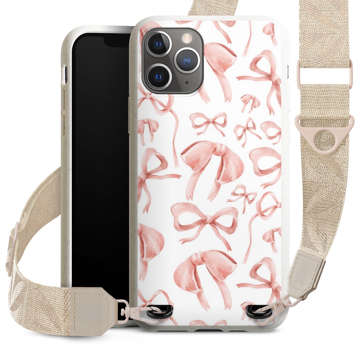 Gestalte Dein Case ganz nach Deinen Wünschen! Edles Creme oder lieber klassisches Schwarz? Du entscheidest, welche Farbe am besten zu Dir passt. Die dezenten Designs der Gurtbänder passen garantiert zu Deiner Hülle, egal mit welchem Lieblingsmotiv Du Dein Case bedrucken lässt.