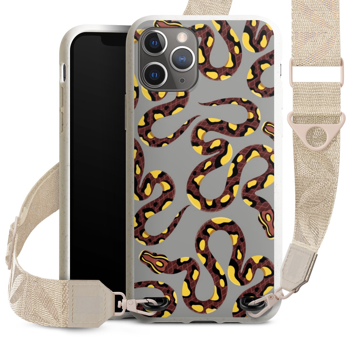 Gestalte Dein Case ganz nach Deinen Wünschen! Edles Creme oder lieber klassisches Schwarz? Du entscheidest, welche Farbe am besten zu Dir passt. Die dezenten Designs der Gurtbänder passen garantiert zu Deiner Hülle, egal mit welchem Lieblingsmotiv Du Dein Case bedrucken lässt.