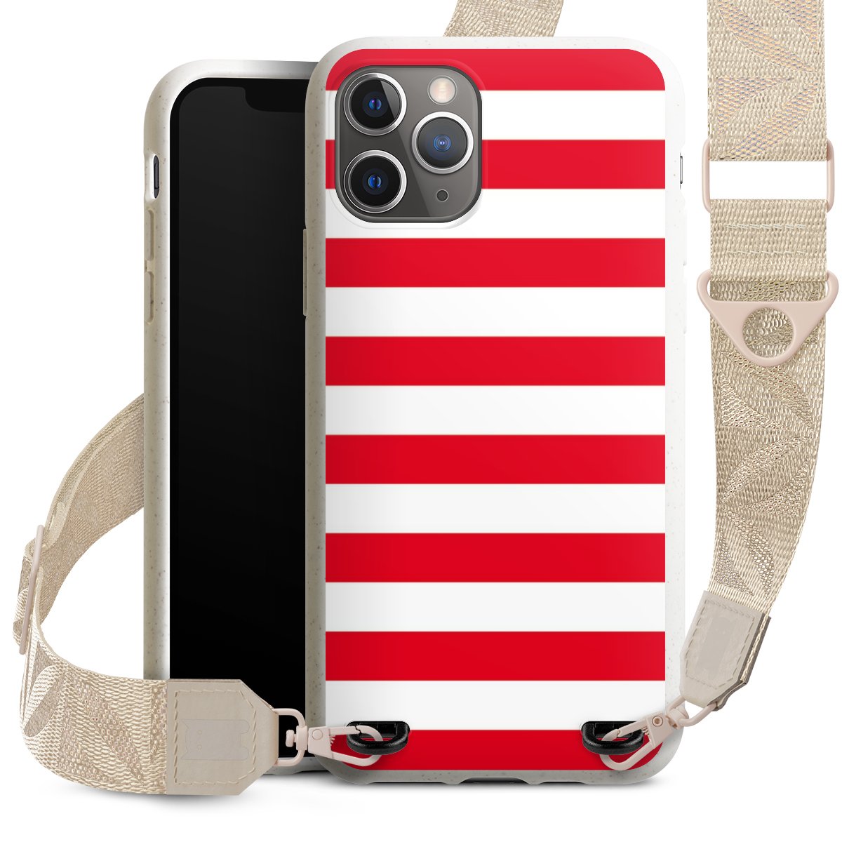 Gestalte Dein Case ganz nach Deinen Wünschen! Edles Creme oder lieber klassisches Schwarz? Du entscheidest, welche Farbe am besten zu Dir passt. Die dezenten Designs der Gurtbänder passen garantiert zu Deiner Hülle, egal mit welchem Lieblingsmotiv Du Dein Case bedrucken lässt.