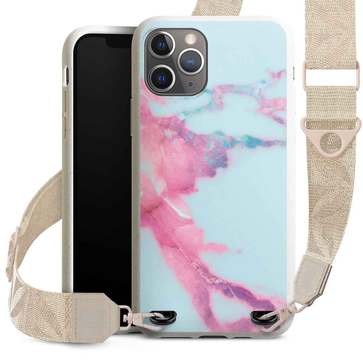 Gestalte Dein Case ganz nach Deinen Wünschen! Edles Creme oder lieber klassisches Schwarz? Du entscheidest, welche Farbe am besten zu Dir passt. Die dezenten Designs der Gurtbänder passen garantiert zu Deiner Hülle, egal mit welchem Lieblingsmotiv Du Dein Case bedrucken lässt.
