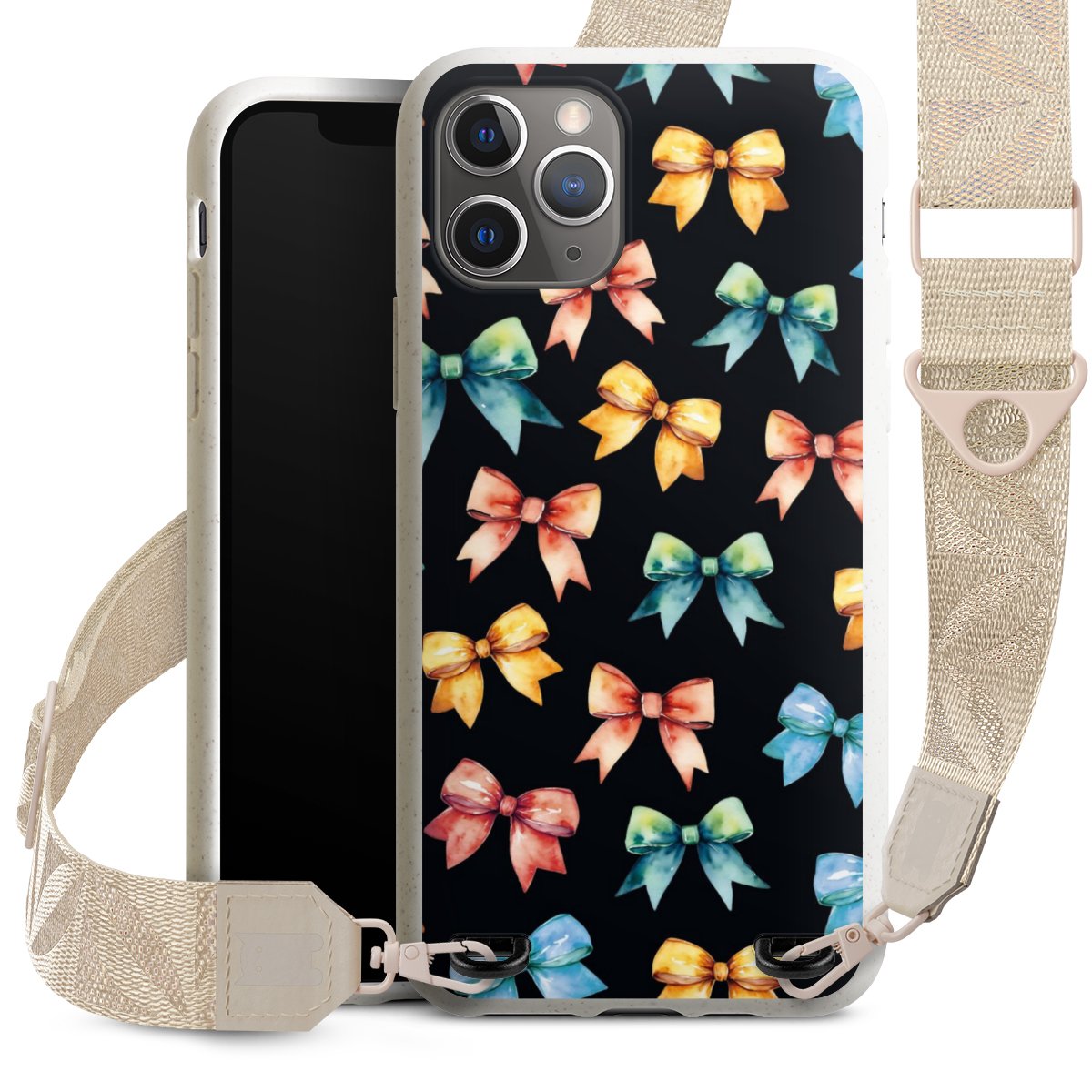 Gestalte Dein Case ganz nach Deinen Wünschen! Edles Creme oder lieber klassisches Schwarz? Du entscheidest, welche Farbe am besten zu Dir passt. Die dezenten Designs der Gurtbänder passen garantiert zu Deiner Hülle, egal mit welchem Lieblingsmotiv Du Dein Case bedrucken lässt.