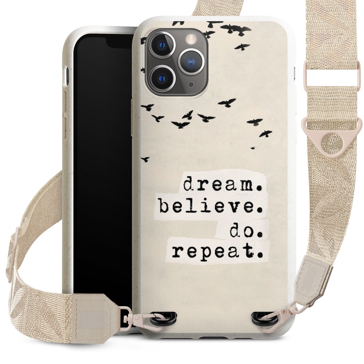 Gestalte Dein Case ganz nach Deinen Wünschen! Edles Creme oder lieber klassisches Schwarz? Du entscheidest, welche Farbe am besten zu Dir passt. Die dezenten Designs der Gurtbänder passen garantiert zu Deiner Hülle, egal mit welchem Lieblingsmotiv Du Dein Case bedrucken lässt.