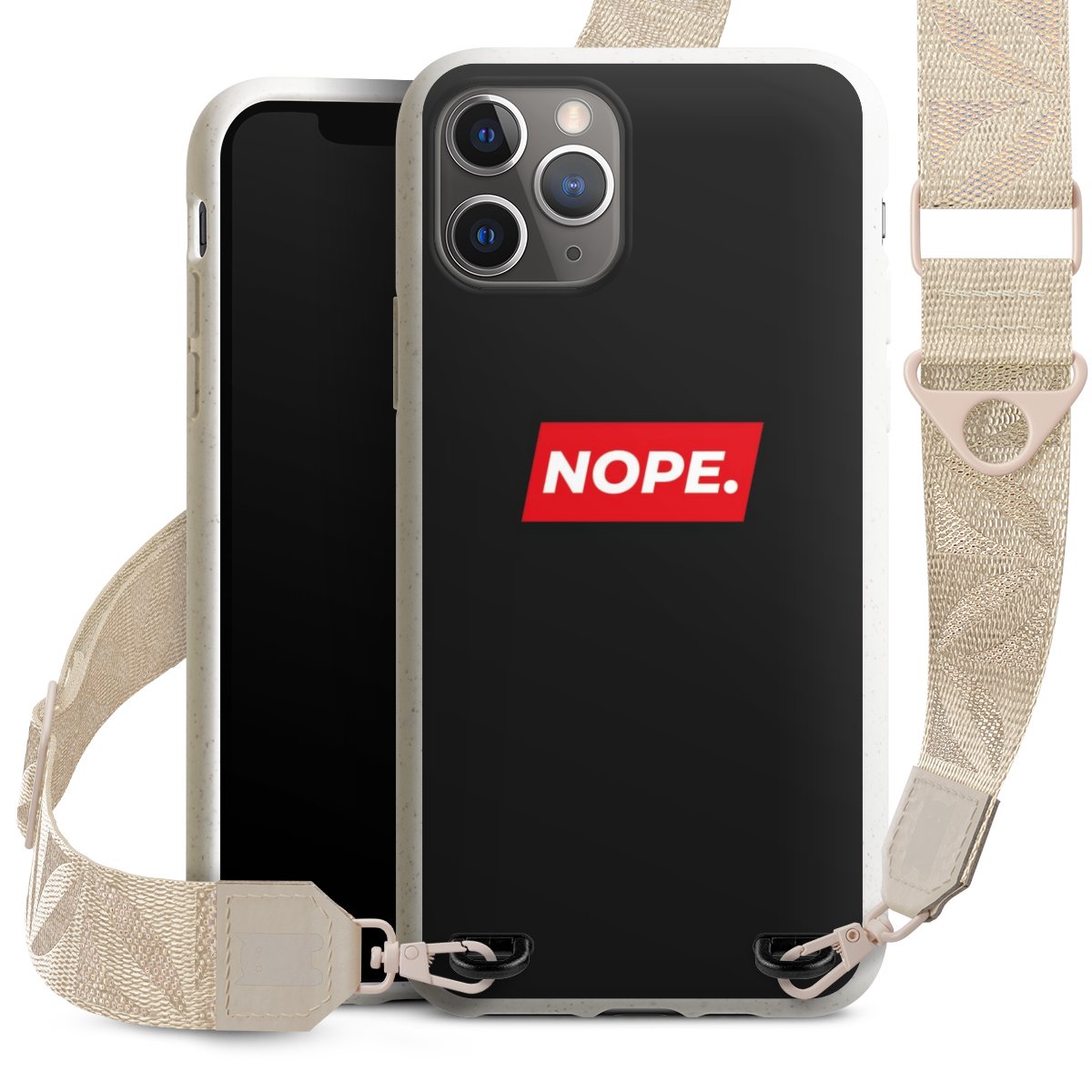 Gestalte Dein Case ganz nach Deinen Wünschen! Edles Creme oder lieber klassisches Schwarz? Du entscheidest, welche Farbe am besten zu Dir passt. Die dezenten Designs der Gurtbänder passen garantiert zu Deiner Hülle, egal mit welchem Lieblingsmotiv Du Dein Case bedrucken lässt.