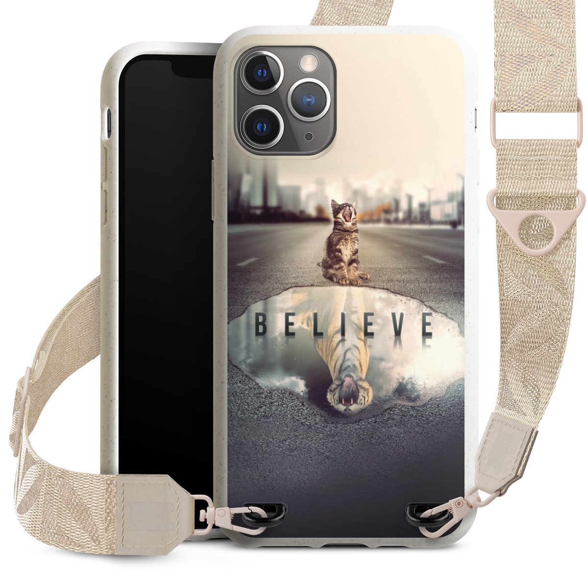 Gestalte Dein Case ganz nach Deinen Wünschen! Edles Creme oder lieber klassisches Schwarz? Du entscheidest, welche Farbe am besten zu Dir passt. Die dezenten Designs der Gurtbänder passen garantiert zu Deiner Hülle, egal mit welchem Lieblingsmotiv Du Dein Case bedrucken lässt.