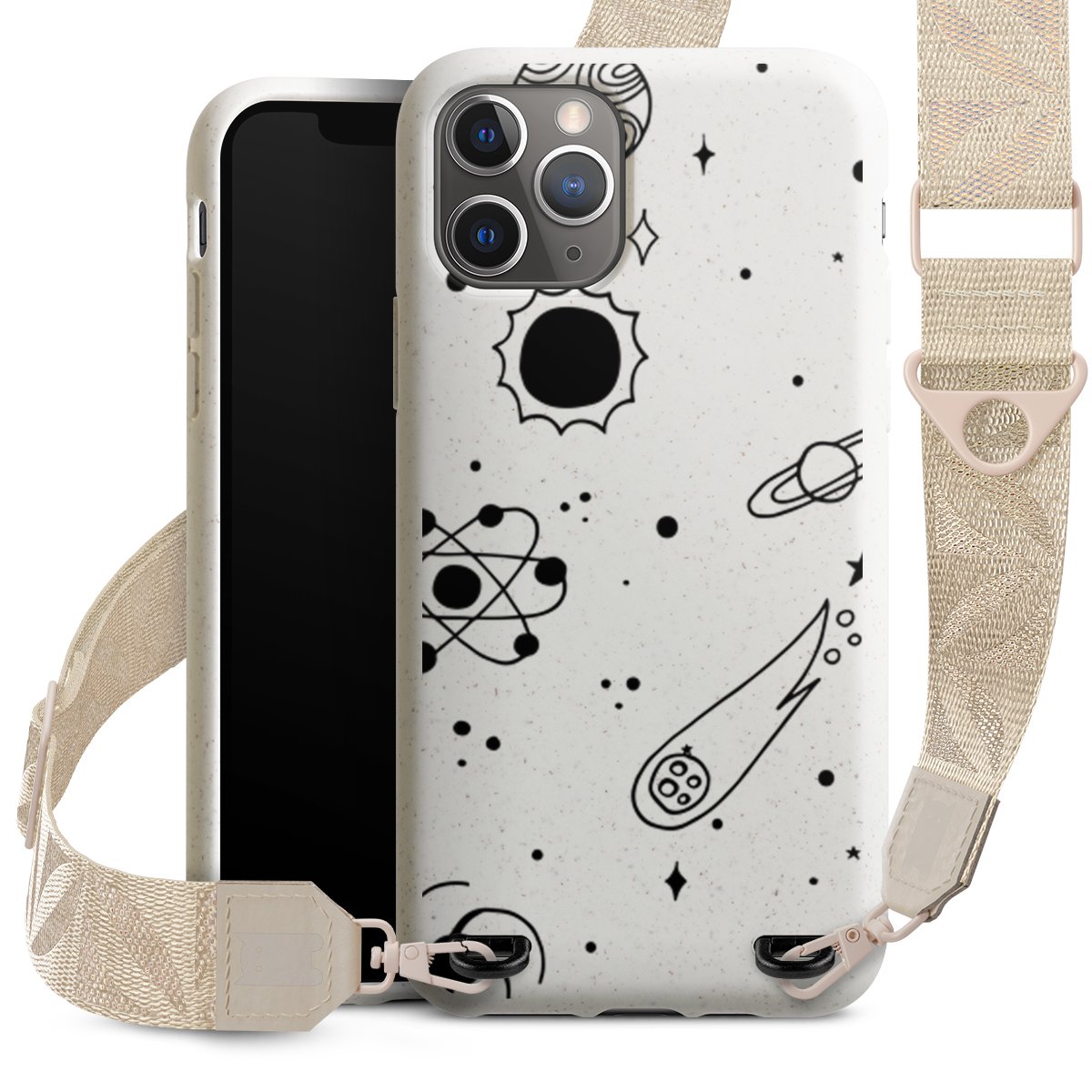 Gestalte Dein Case ganz nach Deinen Wünschen! Edles Creme oder lieber klassisches Schwarz? Du entscheidest, welche Farbe am besten zu Dir passt. Die dezenten Designs der Gurtbänder passen garantiert zu Deiner Hülle, egal mit welchem Lieblingsmotiv Du Dein Case bedrucken lässt.
