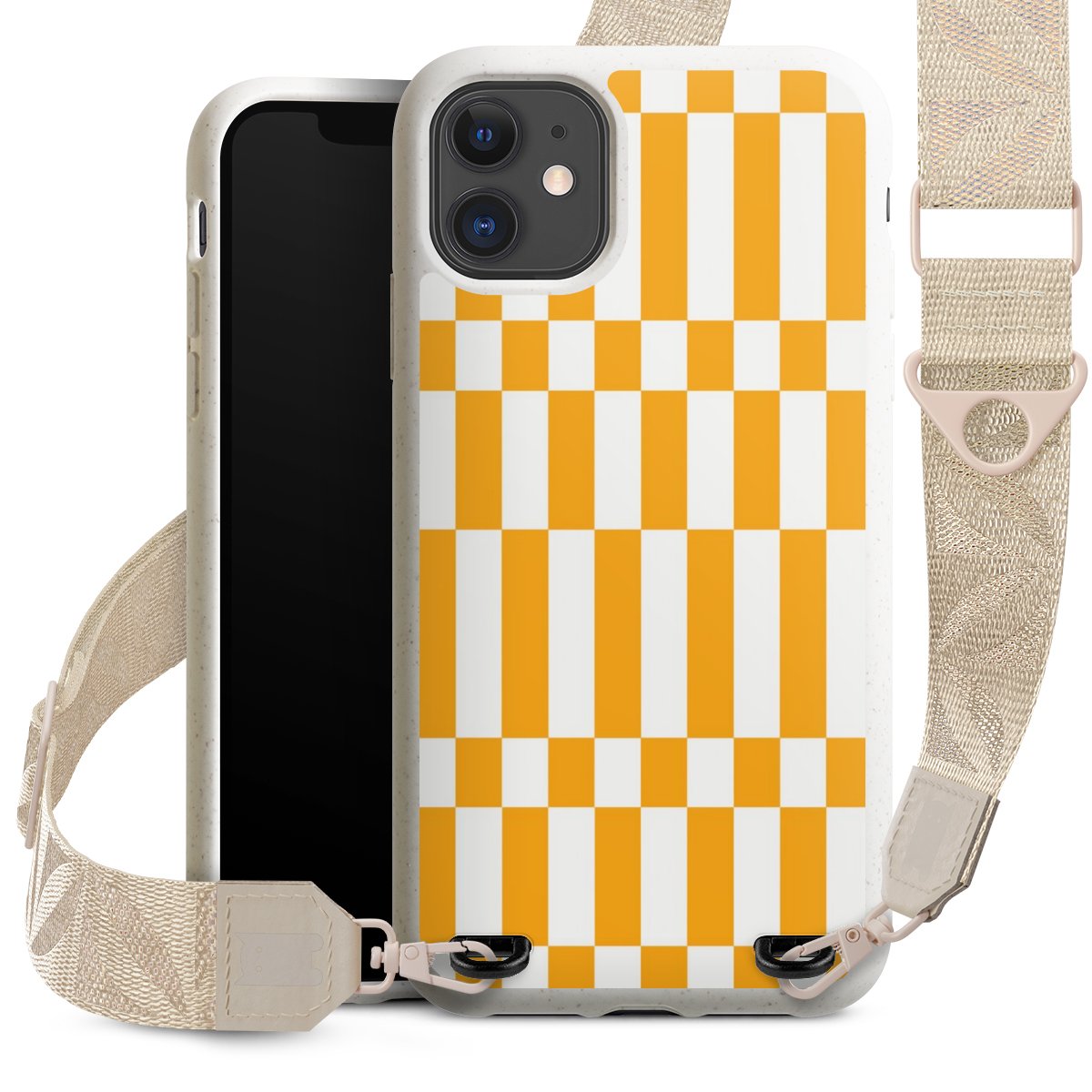 Gestalte Dein Case ganz nach Deinen Wünschen! Edles Creme oder lieber klassisches Schwarz? Du entscheidest, welche Farbe am besten zu Dir passt. Die dezenten Designs der Gurtbänder passen garantiert zu Deiner Hülle, egal mit welchem Lieblingsmotiv Du Dein Case bedrucken lässt.