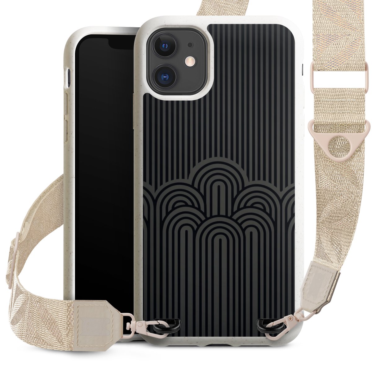 Gestalte Dein Case ganz nach Deinen Wünschen! Edles Creme oder lieber klassisches Schwarz? Du entscheidest, welche Farbe am besten zu Dir passt. Die dezenten Designs der Gurtbänder passen garantiert zu Deiner Hülle, egal mit welchem Lieblingsmotiv Du Dein Case bedrucken lässt.