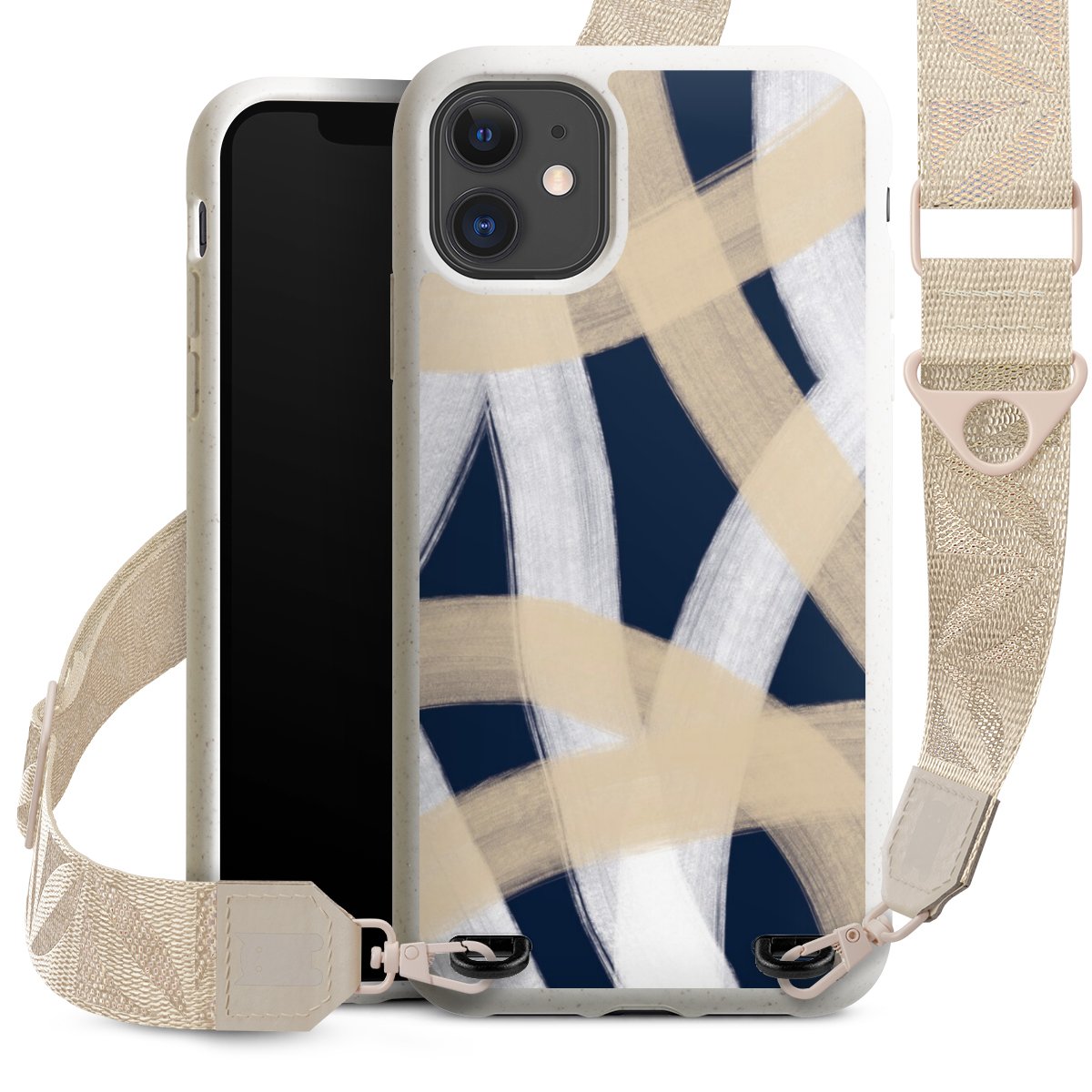 Gestalte Dein Case ganz nach Deinen Wünschen! Edles Creme oder lieber klassisches Schwarz? Du entscheidest, welche Farbe am besten zu Dir passt. Die dezenten Designs der Gurtbänder passen garantiert zu Deiner Hülle, egal mit welchem Lieblingsmotiv Du Dein Case bedrucken lässt.