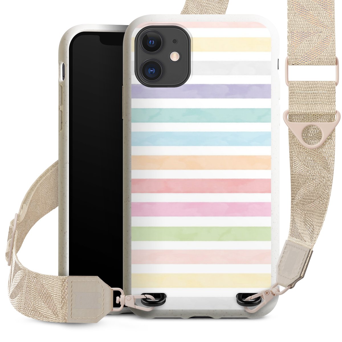 Gestalte Dein Case ganz nach Deinen Wünschen! Edles Creme oder lieber klassisches Schwarz? Du entscheidest, welche Farbe am besten zu Dir passt. Die dezenten Designs der Gurtbänder passen garantiert zu Deiner Hülle, egal mit welchem Lieblingsmotiv Du Dein Case bedrucken lässt.