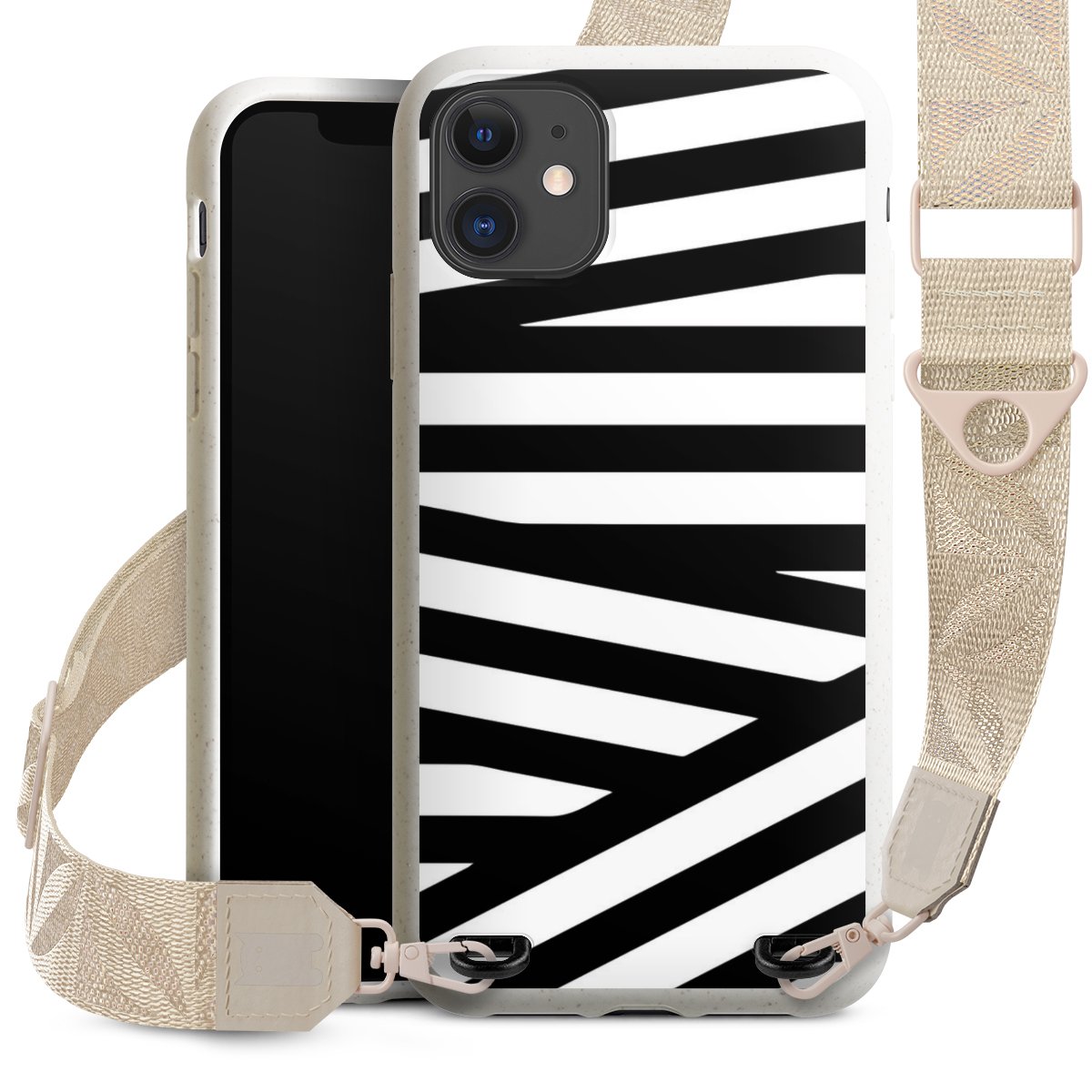 Gestalte Dein Case ganz nach Deinen Wünschen! Edles Creme oder lieber klassisches Schwarz? Du entscheidest, welche Farbe am besten zu Dir passt. Die dezenten Designs der Gurtbänder passen garantiert zu Deiner Hülle, egal mit welchem Lieblingsmotiv Du Dein Case bedrucken lässt.