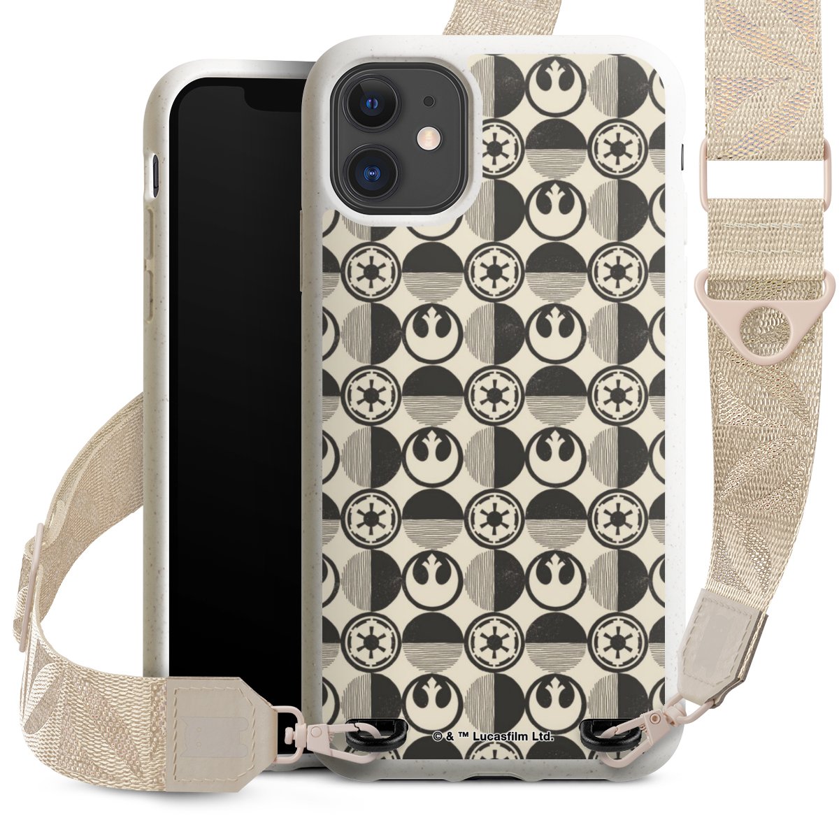 Gestalte Dein Case ganz nach Deinen Wünschen! Edles Creme oder lieber klassisches Schwarz? Du entscheidest, welche Farbe am besten zu Dir passt. Die dezenten Designs der Gurtbänder passen garantiert zu Deiner Hülle, egal mit welchem Lieblingsmotiv Du Dein Case bedrucken lässt.