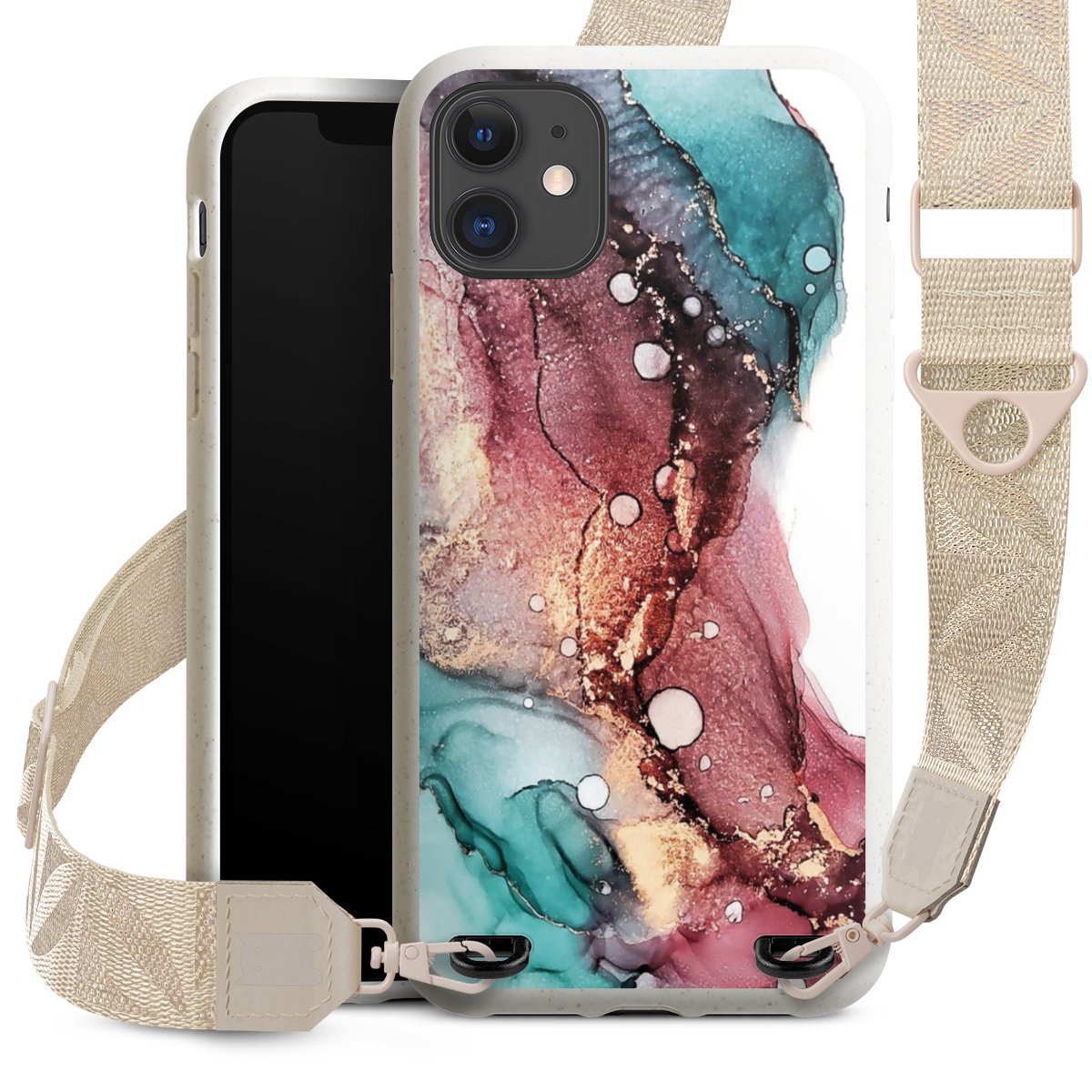 Gestalte Dein Case ganz nach Deinen Wünschen! Edles Creme oder lieber klassisches Schwarz? Du entscheidest, welche Farbe am besten zu Dir passt. Die dezenten Designs der Gurtbänder passen garantiert zu Deiner Hülle, egal mit welchem Lieblingsmotiv Du Dein Case bedrucken lässt.