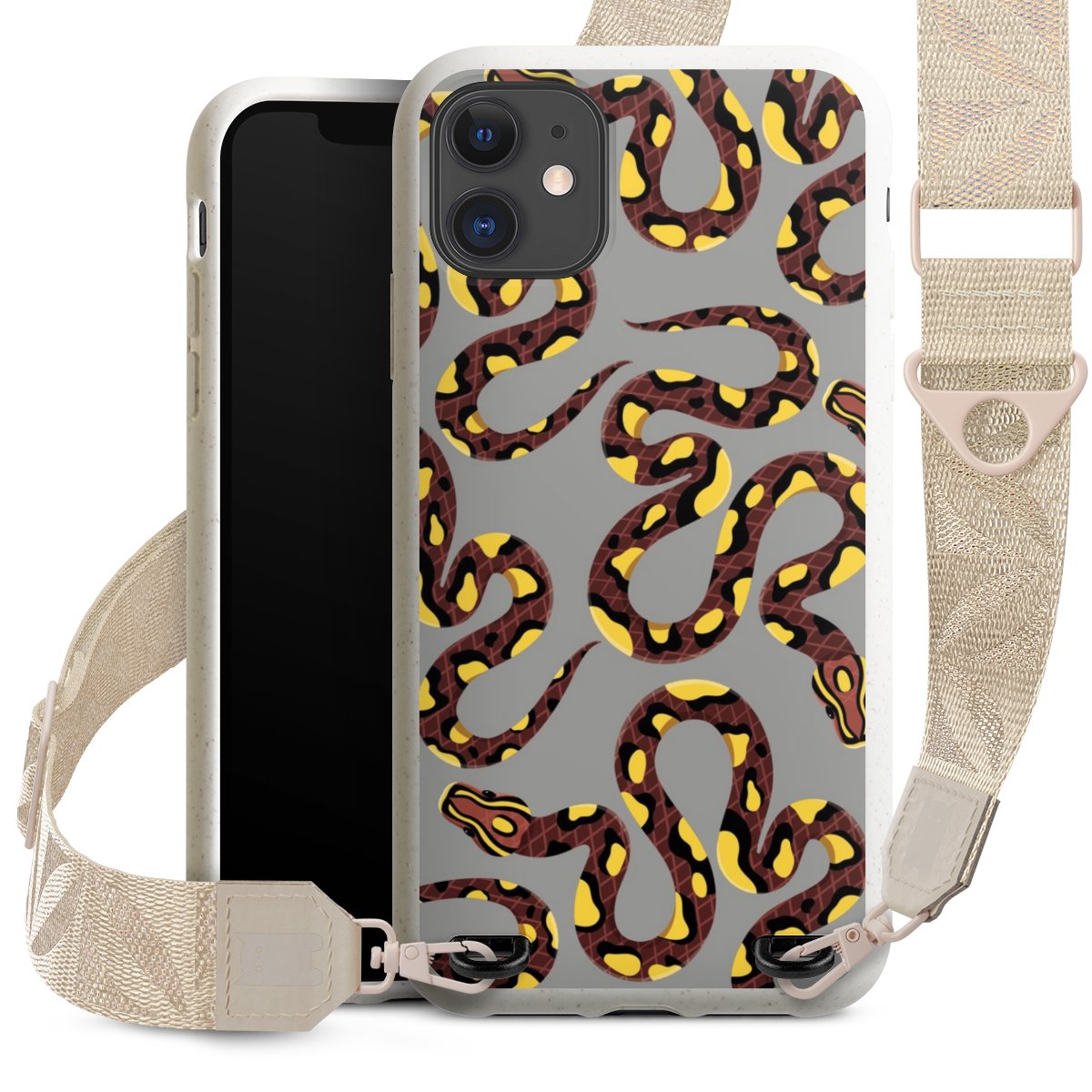 Gestalte Dein Case ganz nach Deinen Wünschen! Edles Creme oder lieber klassisches Schwarz? Du entscheidest, welche Farbe am besten zu Dir passt. Die dezenten Designs der Gurtbänder passen garantiert zu Deiner Hülle, egal mit welchem Lieblingsmotiv Du Dein Case bedrucken lässt.