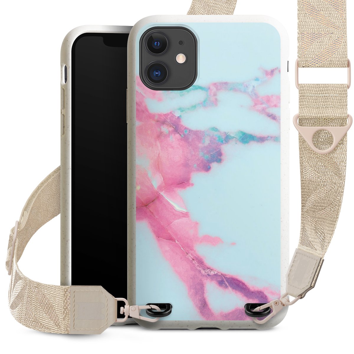 Gestalte Dein Case ganz nach Deinen Wünschen! Edles Creme oder lieber klassisches Schwarz? Du entscheidest, welche Farbe am besten zu Dir passt. Die dezenten Designs der Gurtbänder passen garantiert zu Deiner Hülle, egal mit welchem Lieblingsmotiv Du Dein Case bedrucken lässt.