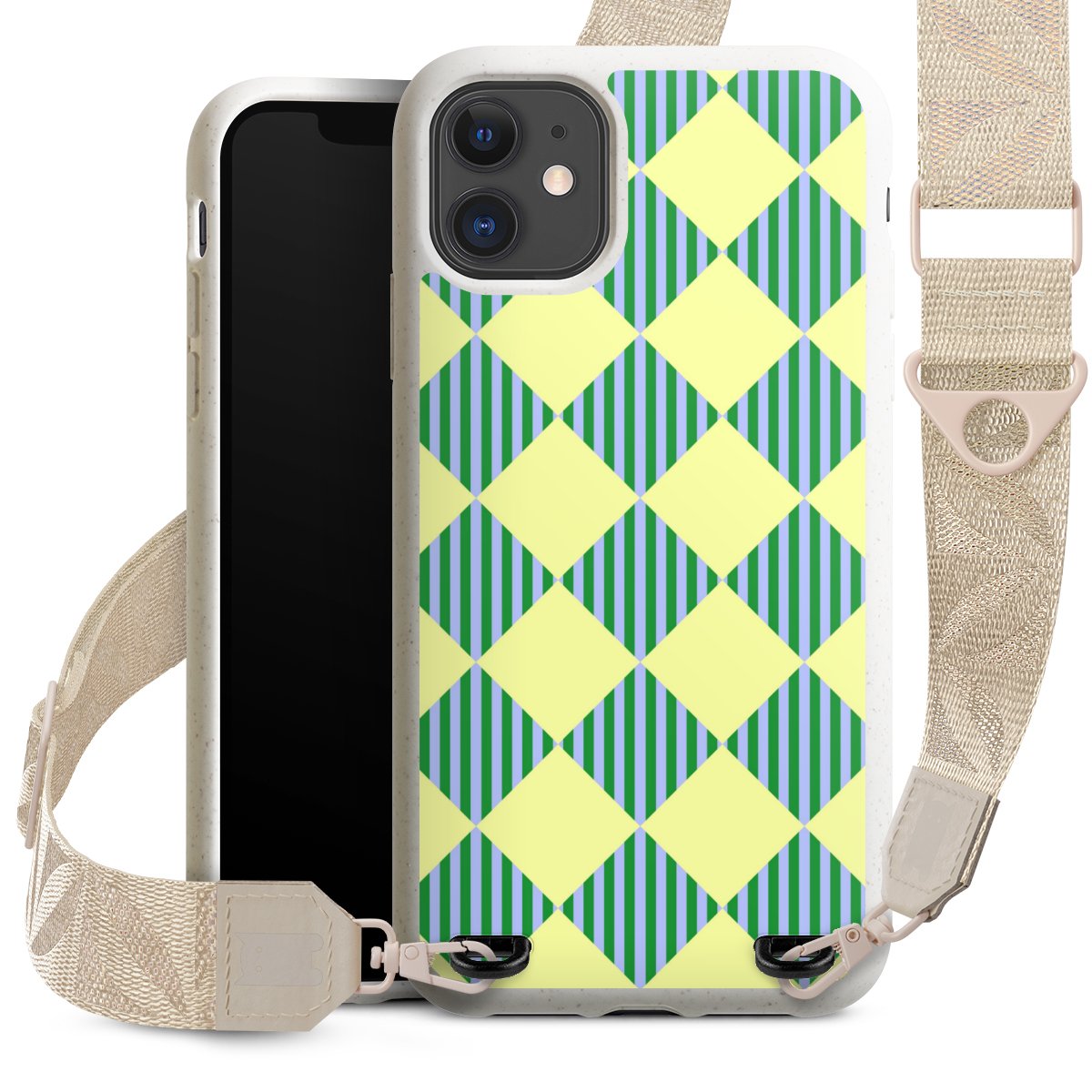 Gestalte Dein Case ganz nach Deinen Wünschen! Edles Creme oder lieber klassisches Schwarz? Du entscheidest, welche Farbe am besten zu Dir passt. Die dezenten Designs der Gurtbänder passen garantiert zu Deiner Hülle, egal mit welchem Lieblingsmotiv Du Dein Case bedrucken lässt.