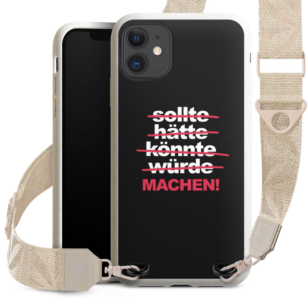 Gestalte Dein Case ganz nach Deinen Wünschen! Edles Creme oder lieber klassisches Schwarz? Du entscheidest, welche Farbe am besten zu Dir passt. Die dezenten Designs der Gurtbänder passen garantiert zu Deiner Hülle, egal mit welchem Lieblingsmotiv Du Dein Case bedrucken lässt.