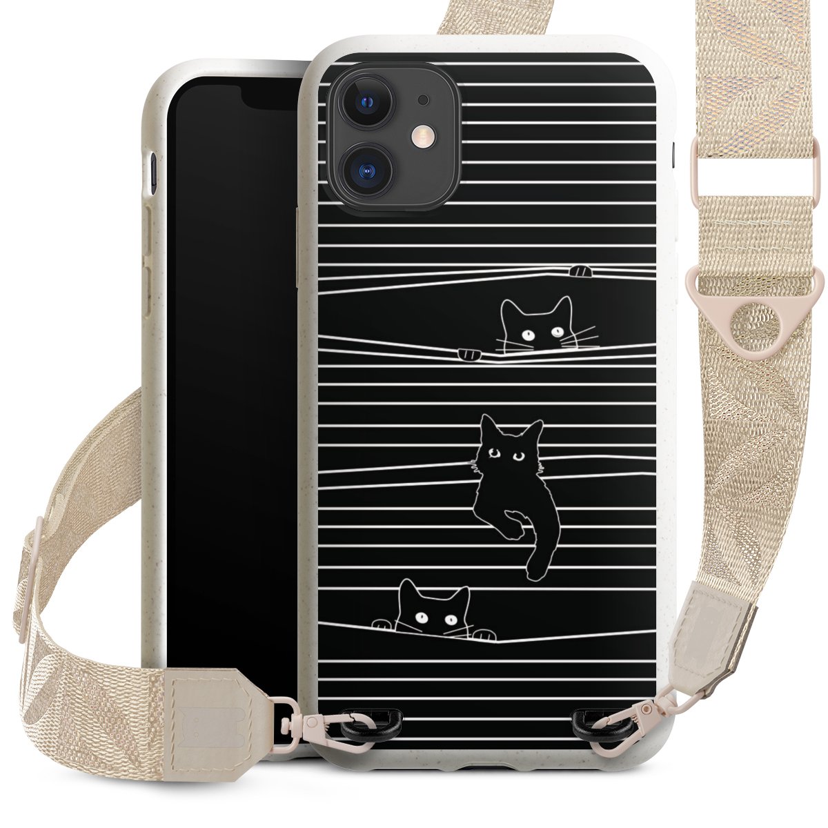 Gestalte Dein Case ganz nach Deinen Wünschen! Edles Creme oder lieber klassisches Schwarz? Du entscheidest, welche Farbe am besten zu Dir passt. Die dezenten Designs der Gurtbänder passen garantiert zu Deiner Hülle, egal mit welchem Lieblingsmotiv Du Dein Case bedrucken lässt.