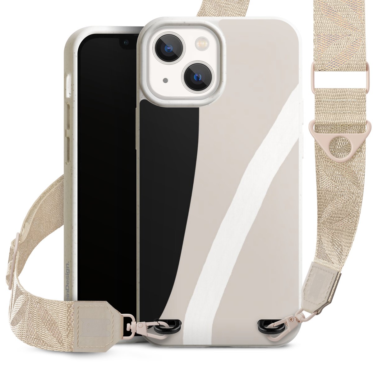 Gestalte Dein Case ganz nach Deinen Wünschen! Edles Creme oder lieber klassisches Schwarz? Du entscheidest, welche Farbe am besten zu Dir passt. Die dezenten Designs der Gurtbänder passen garantiert zu Deiner Hülle, egal mit welchem Lieblingsmotiv Du Dein Case bedrucken lässt.