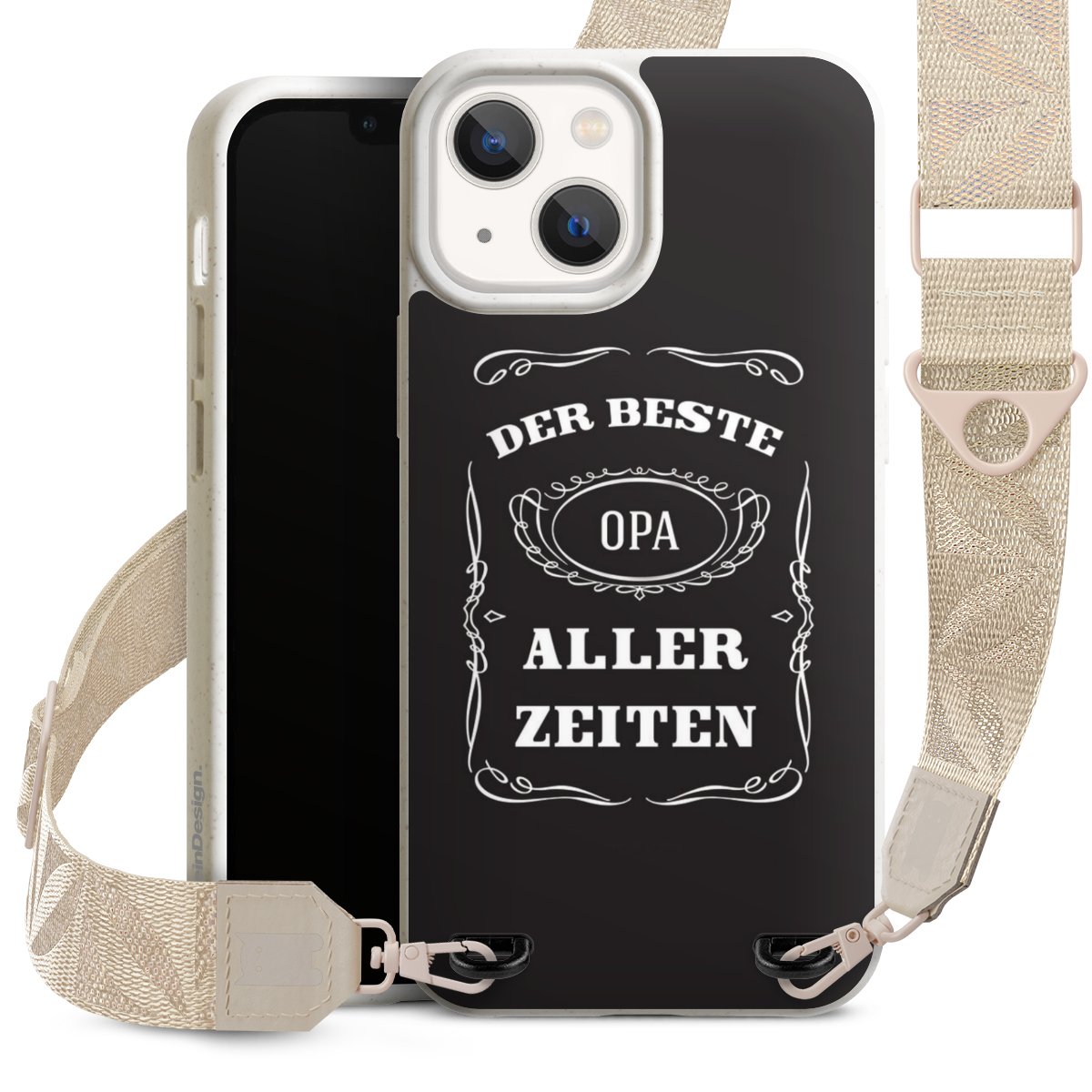 Gestalte Dein Case ganz nach Deinen Wünschen! Edles Creme oder lieber klassisches Schwarz? Du entscheidest, welche Farbe am besten zu Dir passt. Die dezenten Designs der Gurtbänder passen garantiert zu Deiner Hülle, egal mit welchem Lieblingsmotiv Du Dein Case bedrucken lässt.