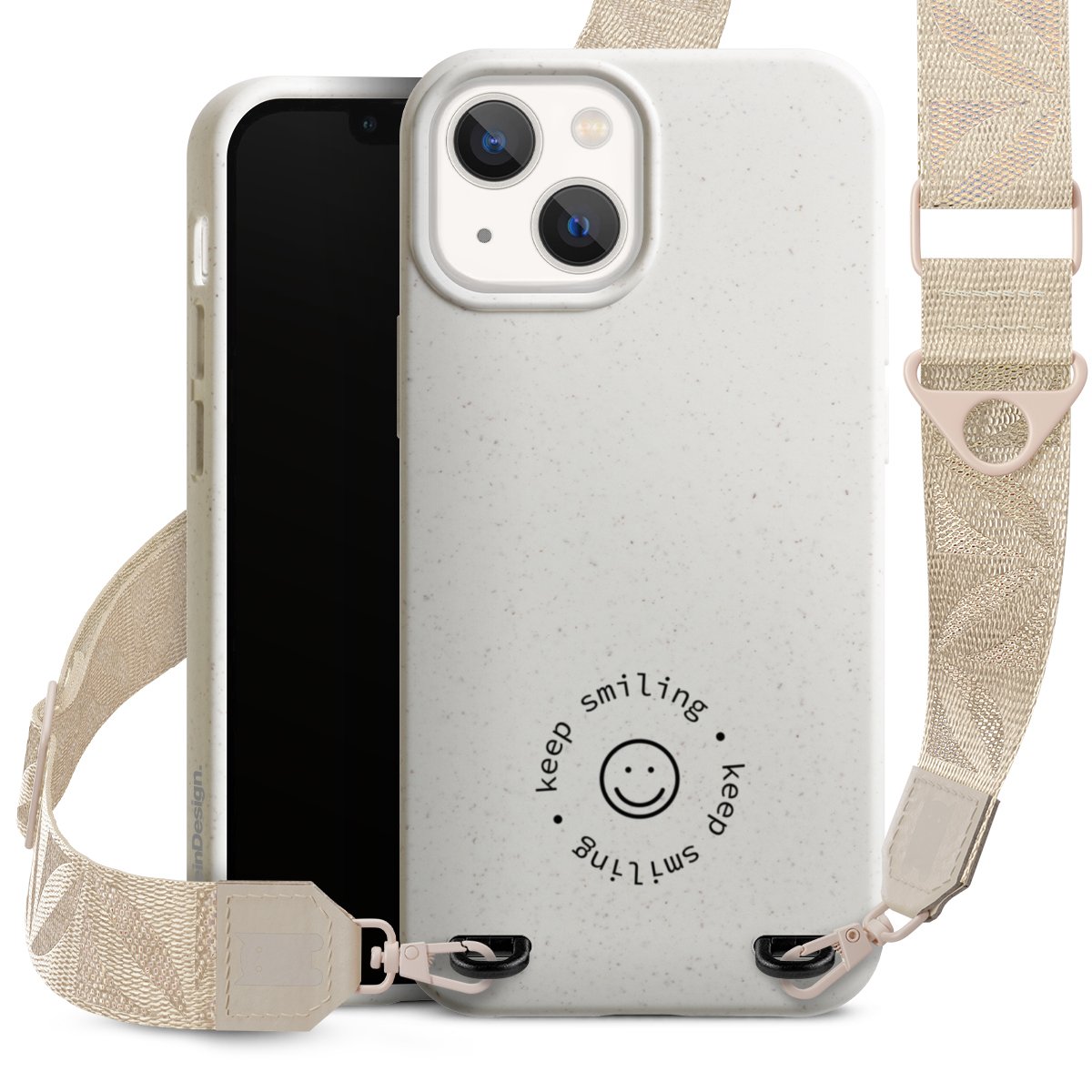 Gestalte Dein Case ganz nach Deinen Wünschen! Edles Creme oder lieber klassisches Schwarz? Du entscheidest, welche Farbe am besten zu Dir passt. Die dezenten Designs der Gurtbänder passen garantiert zu Deiner Hülle, egal mit welchem Lieblingsmotiv Du Dein Case bedrucken lässt.
