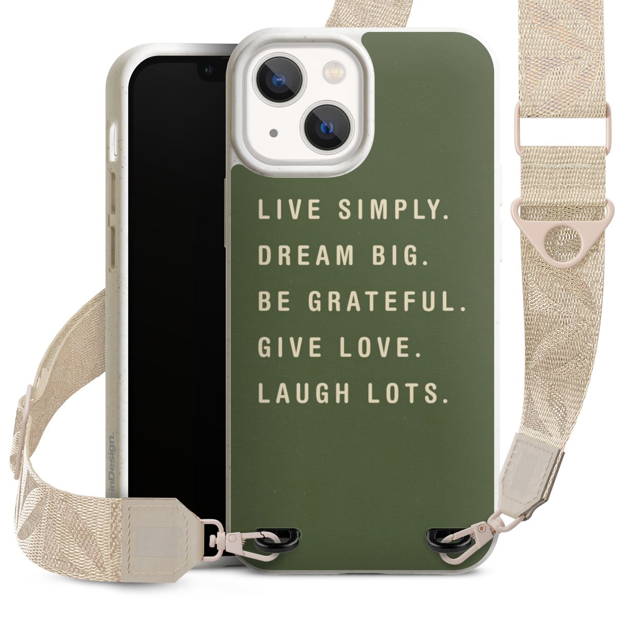 Gestalte Dein Case ganz nach Deinen Wünschen! Edles Creme oder lieber klassisches Schwarz? Du entscheidest, welche Farbe am besten zu Dir passt. Die dezenten Designs der Gurtbänder passen garantiert zu Deiner Hülle, egal mit welchem Lieblingsmotiv Du Dein Case bedrucken lässt.