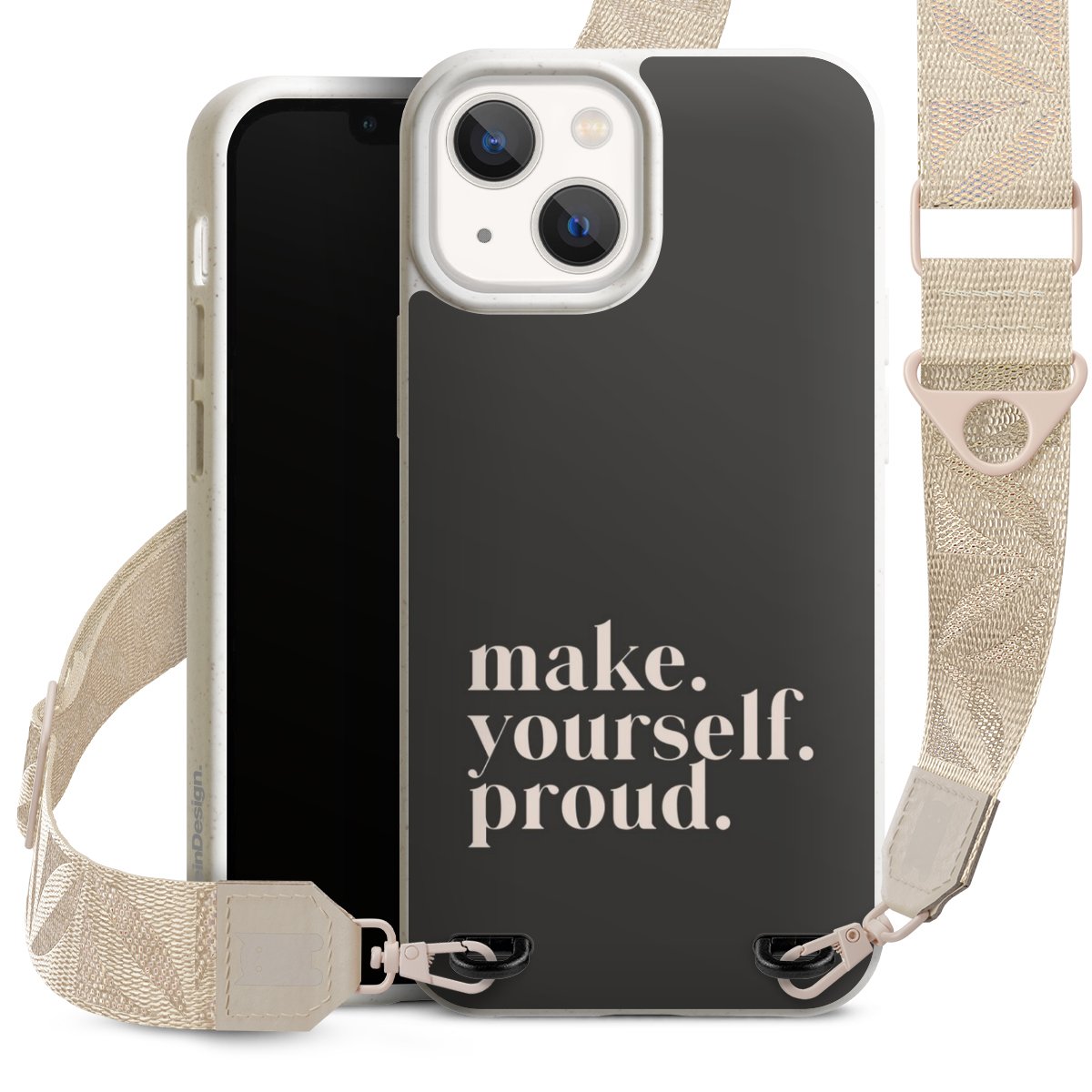 Gestalte Dein Case ganz nach Deinen Wünschen! Edles Creme oder lieber klassisches Schwarz? Du entscheidest, welche Farbe am besten zu Dir passt. Die dezenten Designs der Gurtbänder passen garantiert zu Deiner Hülle, egal mit welchem Lieblingsmotiv Du Dein Case bedrucken lässt.