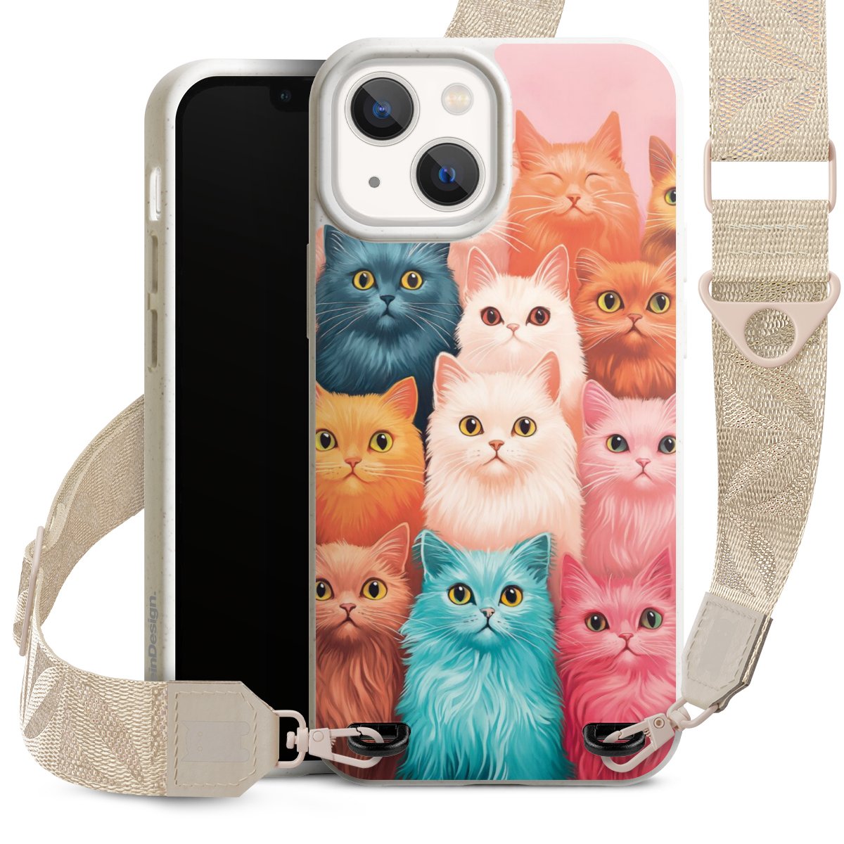 Gestalte Dein Case ganz nach Deinen Wünschen! Edles Creme oder lieber klassisches Schwarz? Du entscheidest, welche Farbe am besten zu Dir passt. Die dezenten Designs der Gurtbänder passen garantiert zu Deiner Hülle, egal mit welchem Lieblingsmotiv Du Dein Case bedrucken lässt.