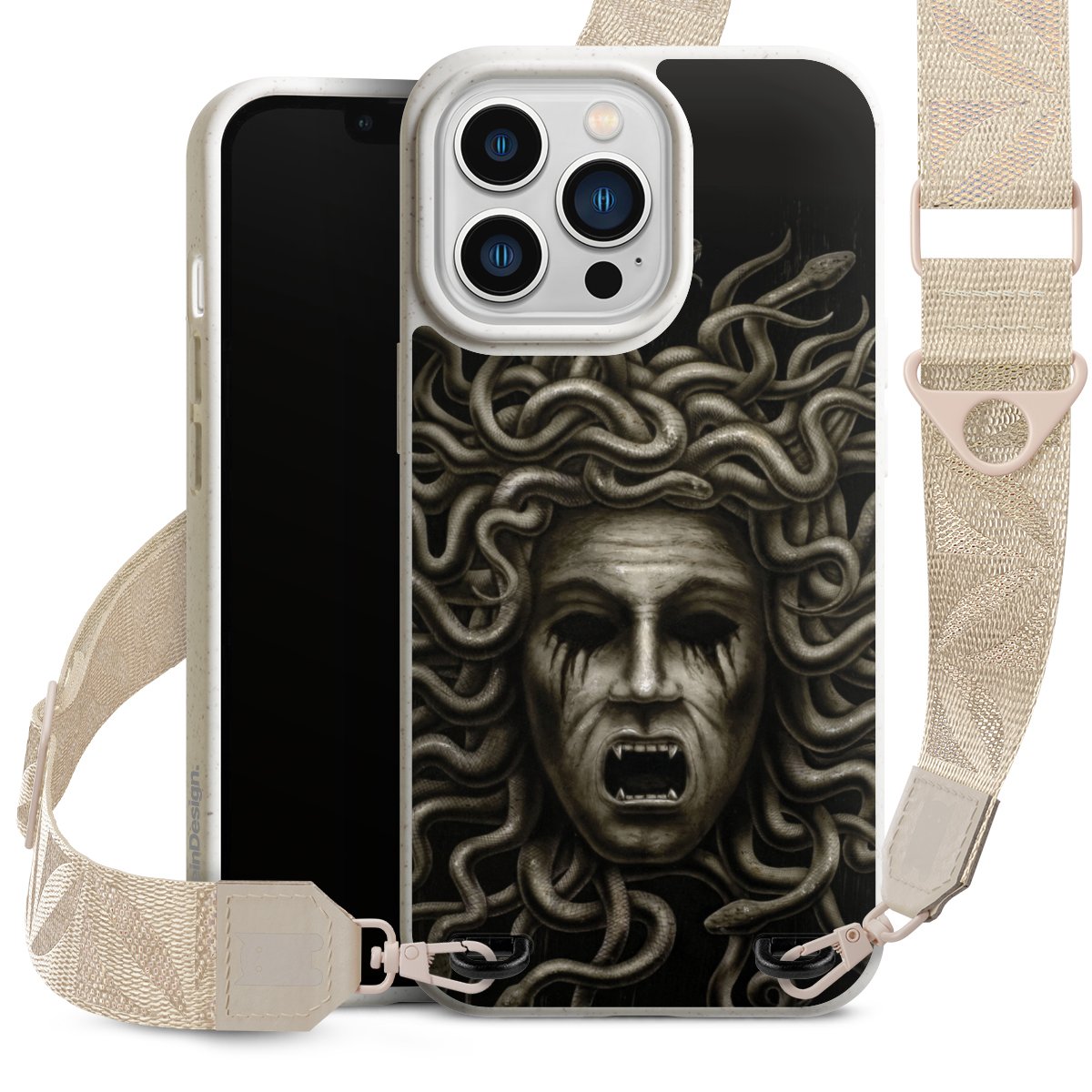 Gestalte Dein Case ganz nach Deinen Wünschen! Edles Creme oder lieber klassisches Schwarz? Du entscheidest, welche Farbe am besten zu Dir passt. Die dezenten Designs der Gurtbänder passen garantiert zu Deiner Hülle, egal mit welchem Lieblingsmotiv Du Dein Case bedrucken lässt.