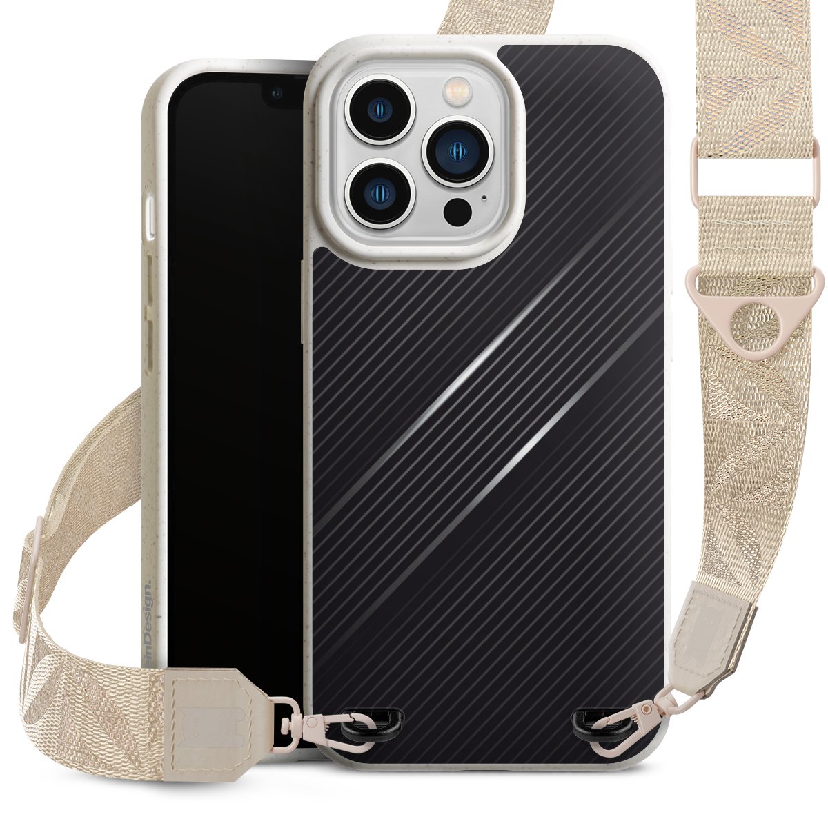 Gestalte Dein Case ganz nach Deinen Wünschen! Edles Creme oder lieber klassisches Schwarz? Du entscheidest, welche Farbe am besten zu Dir passt. Die dezenten Designs der Gurtbänder passen garantiert zu Deiner Hülle, egal mit welchem Lieblingsmotiv Du Dein Case bedrucken lässt.