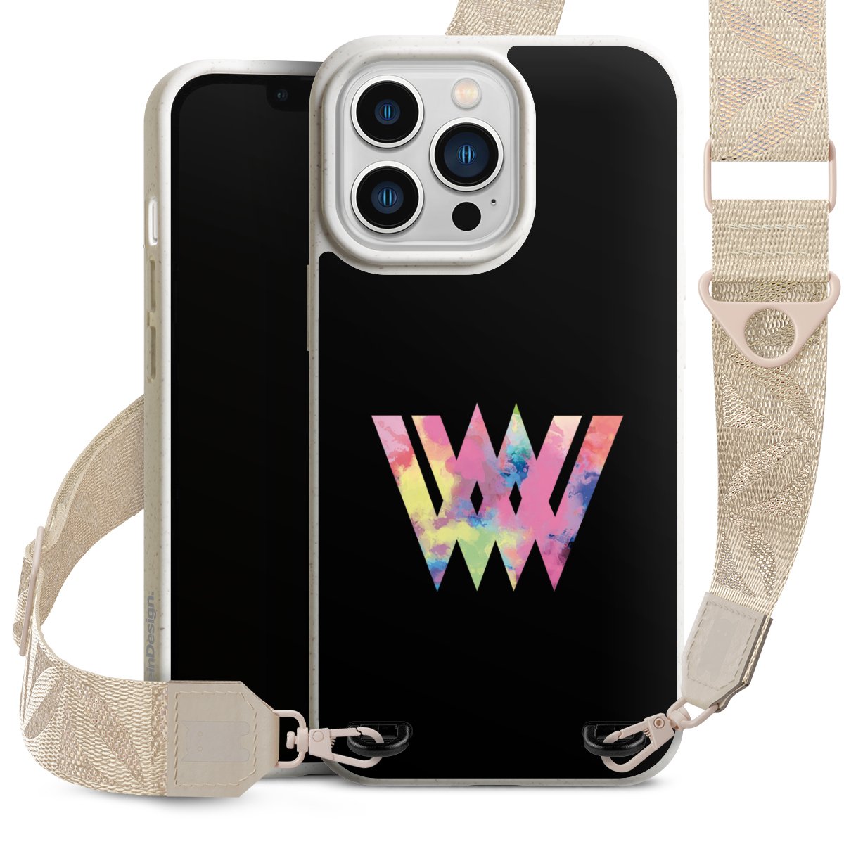 Gestalte Dein Case ganz nach Deinen Wünschen! Edles Creme oder lieber klassisches Schwarz? Du entscheidest, welche Farbe am besten zu Dir passt. Die dezenten Designs der Gurtbänder passen garantiert zu Deiner Hülle, egal mit welchem Lieblingsmotiv Du Dein Case bedrucken lässt.