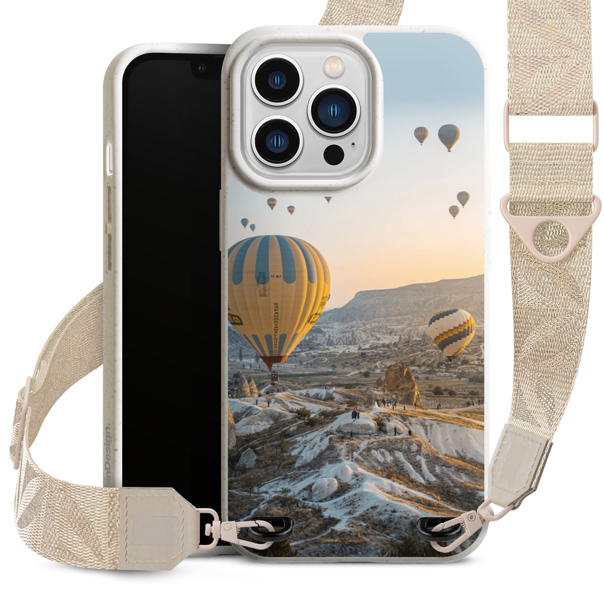 Gestalte Dein Case ganz nach Deinen Wünschen! Edles Creme oder lieber klassisches Schwarz? Du entscheidest, welche Farbe am besten zu Dir passt. Die dezenten Designs der Gurtbänder passen garantiert zu Deiner Hülle, egal mit welchem Lieblingsmotiv Du Dein Case bedrucken lässt.