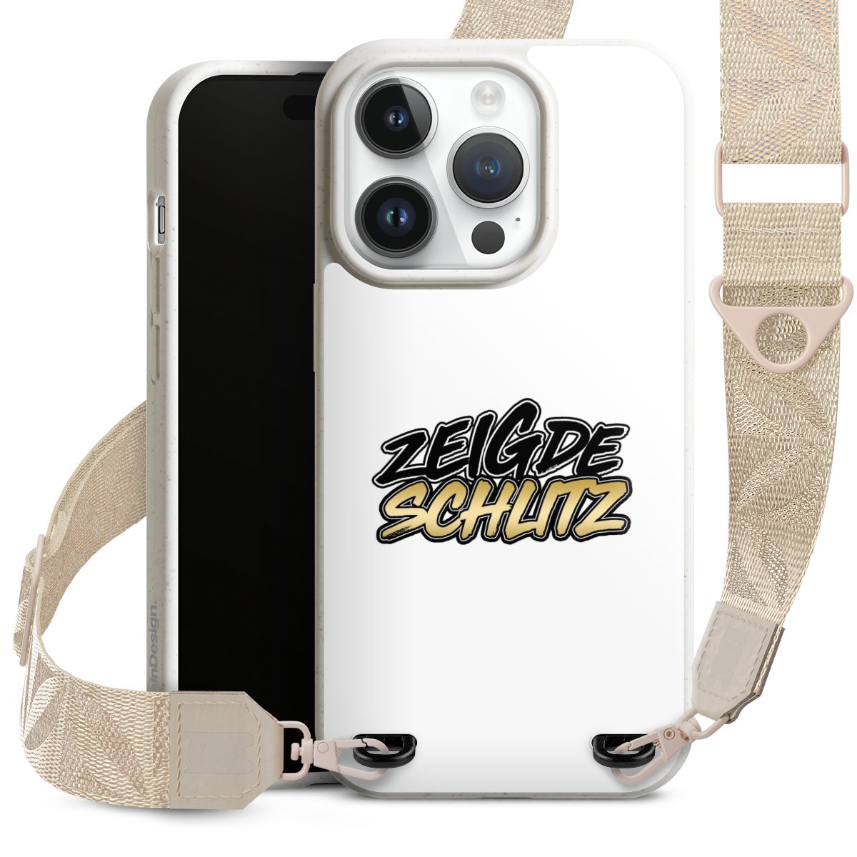 Gestalte Dein Case ganz nach Deinen Wünschen! Edles Creme oder lieber klassisches Schwarz? Du entscheidest, welche Farbe am besten zu Dir passt. Die dezenten Designs der Gurtbänder passen garantiert zu Deiner Hülle, egal mit welchem Lieblingsmotiv Du Dein Case bedrucken lässt.