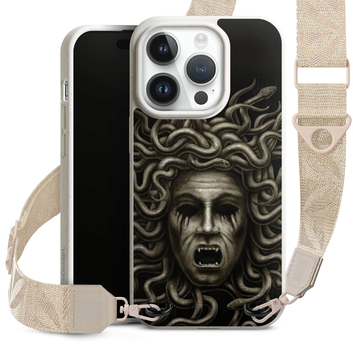 Gestalte Dein Case ganz nach Deinen Wünschen! Edles Creme oder lieber klassisches Schwarz? Du entscheidest, welche Farbe am besten zu Dir passt. Die dezenten Designs der Gurtbänder passen garantiert zu Deiner Hülle, egal mit welchem Lieblingsmotiv Du Dein Case bedrucken lässt.