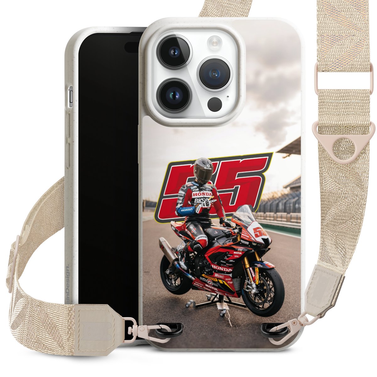 Gestalte Dein Case ganz nach Deinen Wünschen! Edles Creme oder lieber klassisches Schwarz? Du entscheidest, welche Farbe am besten zu Dir passt. Die dezenten Designs der Gurtbänder passen garantiert zu Deiner Hülle, egal mit welchem Lieblingsmotiv Du Dein Case bedrucken lässt.