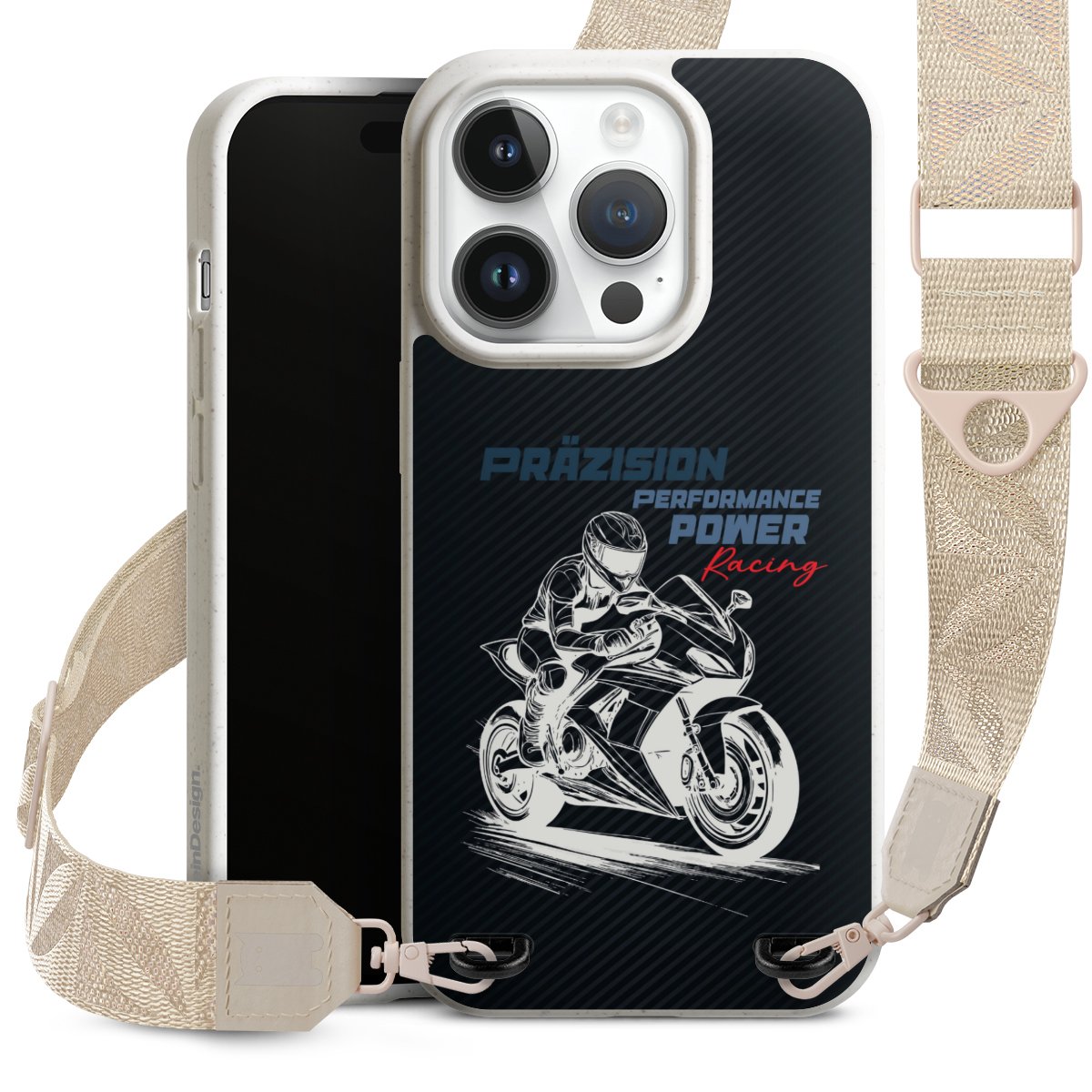 Gestalte Dein Case ganz nach Deinen Wünschen! Edles Creme oder lieber klassisches Schwarz? Du entscheidest, welche Farbe am besten zu Dir passt. Die dezenten Designs der Gurtbänder passen garantiert zu Deiner Hülle, egal mit welchem Lieblingsmotiv Du Dein Case bedrucken lässt.