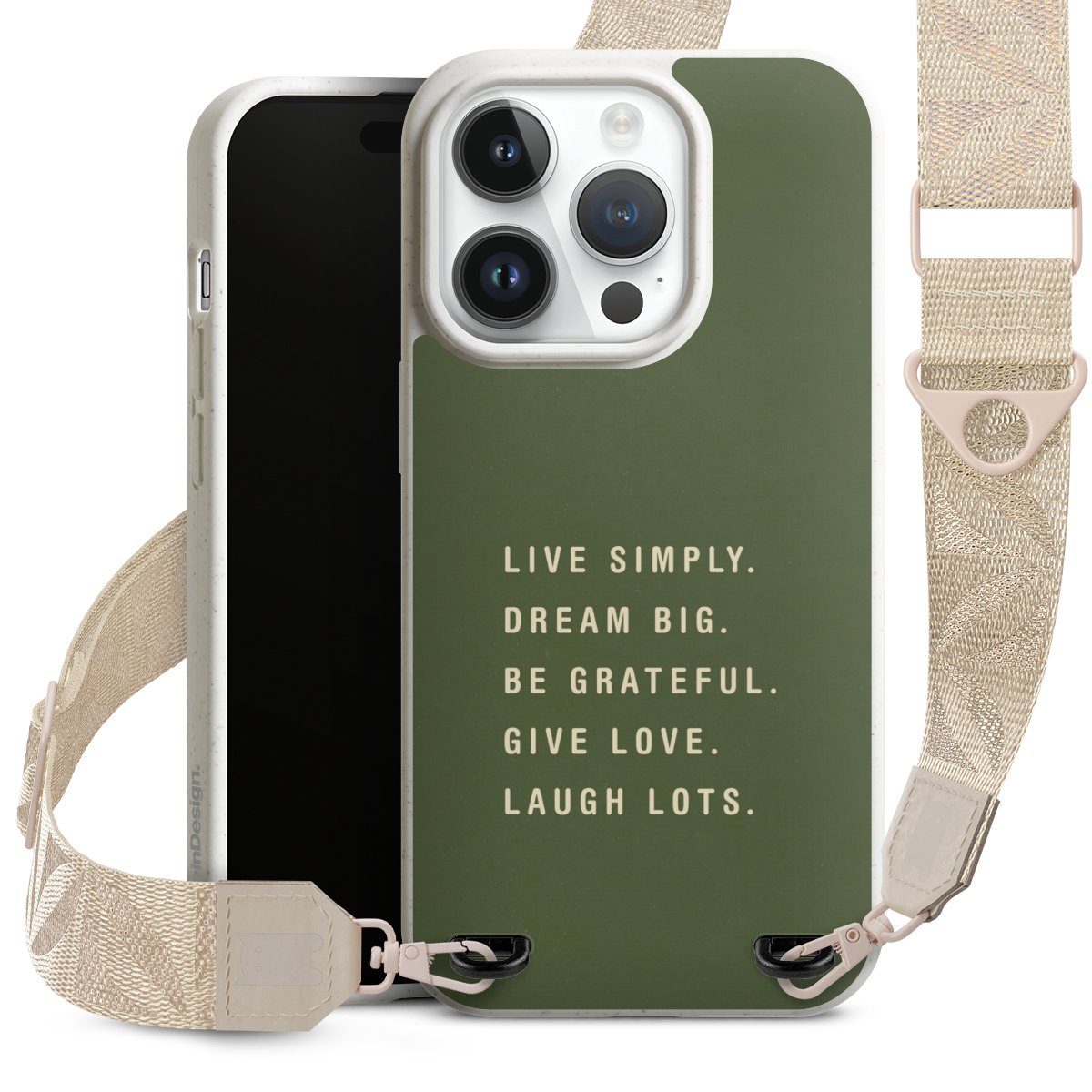 Gestalte Dein Case ganz nach Deinen Wünschen! Edles Creme oder lieber klassisches Schwarz? Du entscheidest, welche Farbe am besten zu Dir passt. Die dezenten Designs der Gurtbänder passen garantiert zu Deiner Hülle, egal mit welchem Lieblingsmotiv Du Dein Case bedrucken lässt.