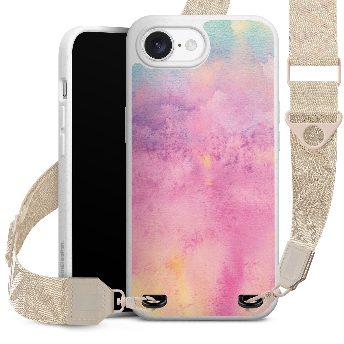 Gestalte Dein Case ganz nach Deinen Wünschen! Edles Creme oder lieber klassisches Schwarz? Du entscheidest, welche Farbe am besten zu Dir passt. Die dezenten Designs der Gurtbänder passen garantiert zu Deiner Hülle, egal mit welchem Lieblingsmotiv Du Dein Case bedrucken lässt.