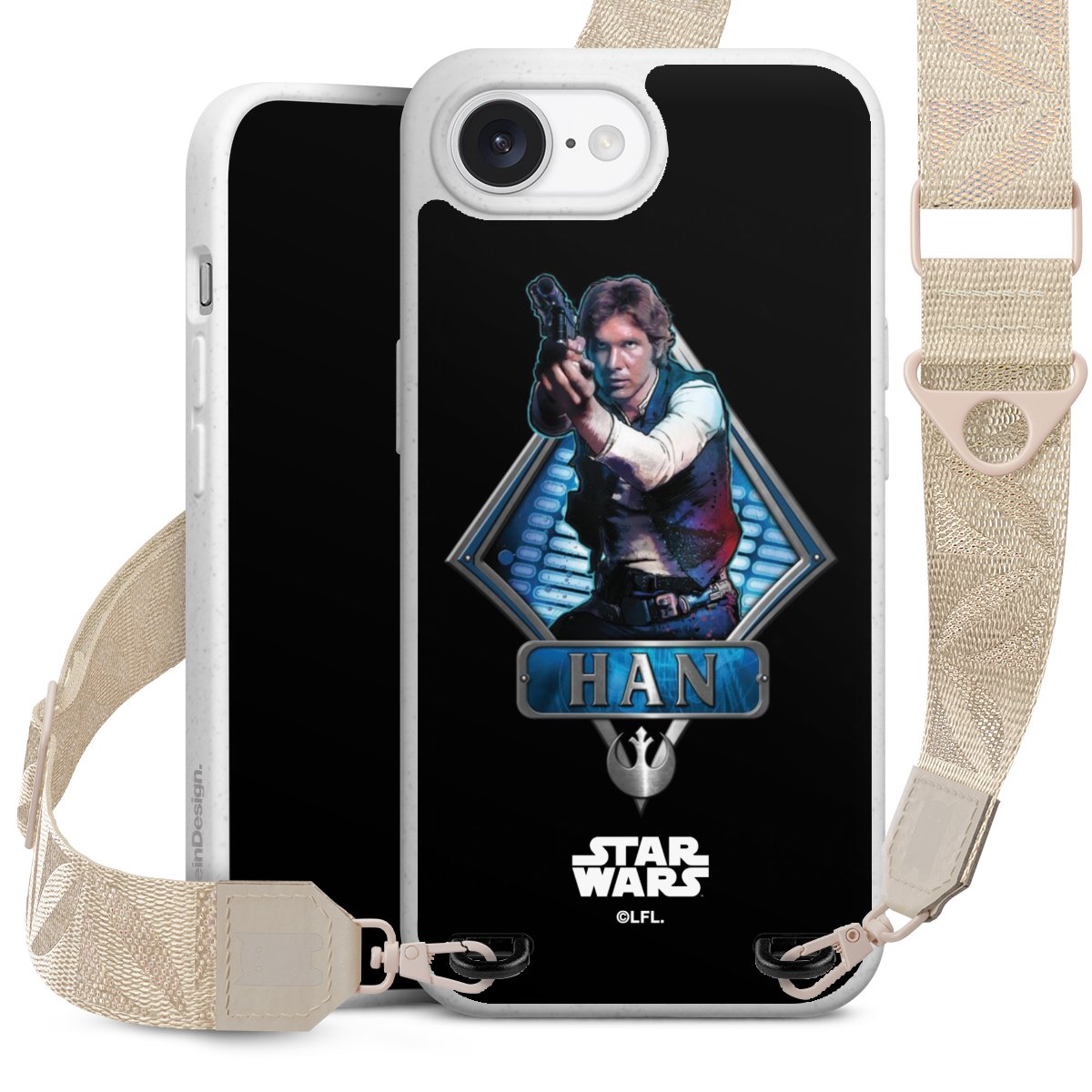 Darth Vader, C3PO, R2D2 und Meister Yoda findest Du in unserem Star Wars Shop auf DeinDesign. Natürlich gibt es auch Star Wars Handyhüllen mit den legendären Charakteren Luke Skywalker, Prinzessin Leia und Han Solo, den Helden der ersten Saga. Wer jedoch die Hauptfiguren der neuen Star Wars Filme ins Herz geschlossen hat, kann auch Finn und Rey mit ihren mächtigen Waffen auf der Rückseite seines Smartphones haben. Die vielseitigen Schutzhüllen in verschiedenen Ausführungen sind das perfekte Geschenk für alle Star Wars Fans, die ihrem Smartphone eine individuelle Note verleihen wollen.
