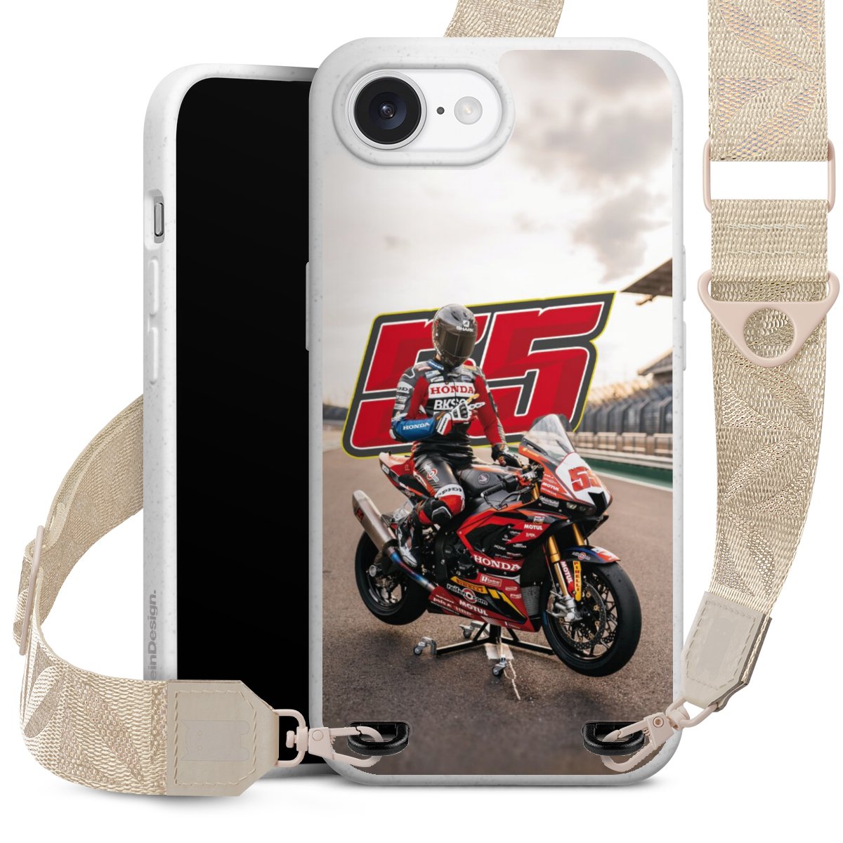 Gestalte Dein Case ganz nach Deinen Wünschen! Edles Creme oder lieber klassisches Schwarz? Du entscheidest, welche Farbe am besten zu Dir passt. Die dezenten Designs der Gurtbänder passen garantiert zu Deiner Hülle, egal mit welchem Lieblingsmotiv Du Dein Case bedrucken lässt.