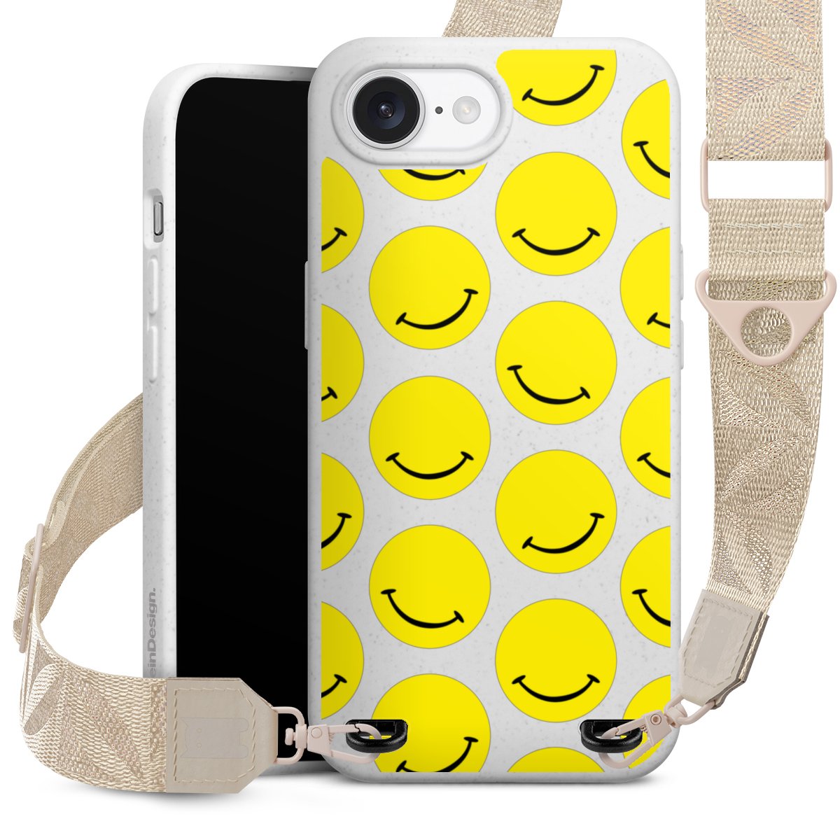 Gestalte Dein Case ganz nach Deinen Wünschen! Edles Creme oder lieber klassisches Schwarz? Du entscheidest, welche Farbe am besten zu Dir passt. Die dezenten Designs der Gurtbänder passen garantiert zu Deiner Hülle, egal mit welchem Lieblingsmotiv Du Dein Case bedrucken lässt.