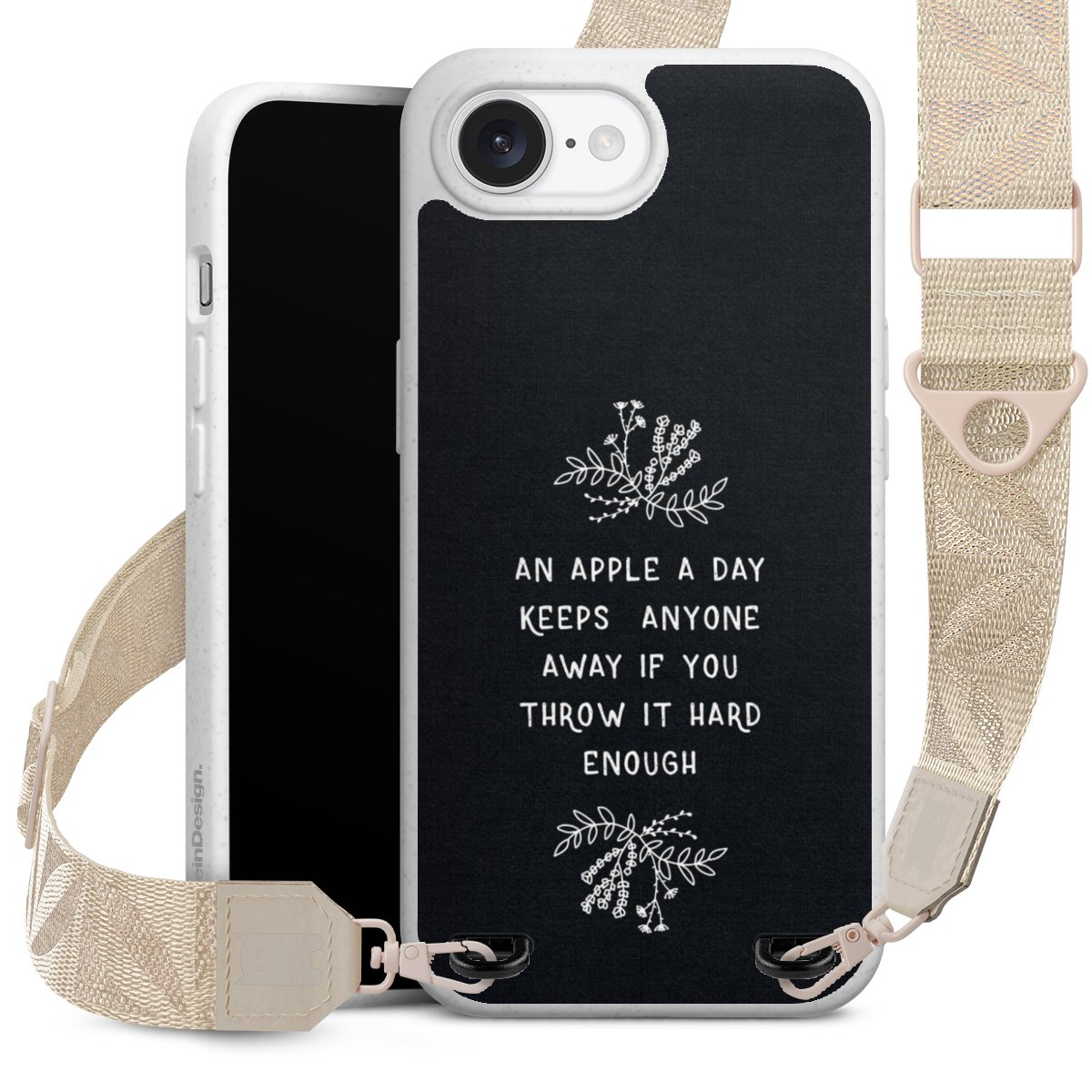 Gestalte Dein Case ganz nach Deinen Wünschen! Edles Creme oder lieber klassisches Schwarz? Du entscheidest, welche Farbe am besten zu Dir passt. Die dezenten Designs der Gurtbänder passen garantiert zu Deiner Hülle, egal mit welchem Lieblingsmotiv Du Dein Case bedrucken lässt.